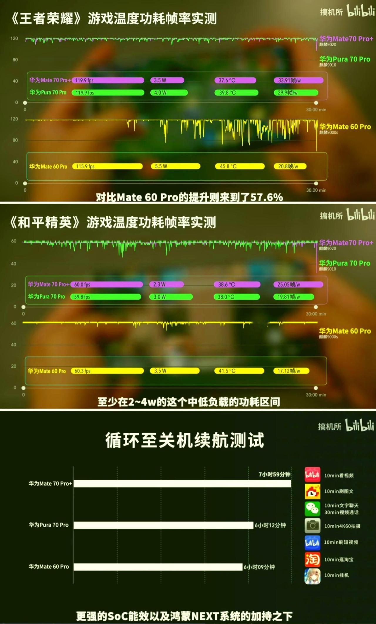 看完华为Mate70系列评测之后,这几个亮点没有想到 1:测试机型是华为Mate70pro+,高亮钛金属边框,手机接口是USB3.1。虽然发布会配置说的很少,但是该给的是一样没少。屏幕手动亮度是709尼特,全局激发亮度是1339nit,这算是旗舰级别的水平 2:因为博主用的手机直接搭载的就是鸿蒙NEXT,所以没有游戏原神,崩坏,这就导致没有测试。不过王者荣耀和和平精英,其实能看出来119帧,功耗只有3.5瓦,37.6度,其实你要说3纳米的骁龙8E肯定没法比,但是已经属于主流偏上的水准了。毕竟中芯国际的工艺,还是DUV工艺基础上中芯国际的N+1工艺,相比麒麟9010的mate60pro提升来到了57.6%。中低负载的情况下,表现尤为突出 3:续航方面,7个应用循环测试,7小时59分钟关机。麒麟9020功耗低,其实最大受益者就是手机续航的直线提升。 4:卫星通讯再升级,第二代灵犀通信技术。首次把卫星模块集成在了SOC上,所以你放在口袋里面寻星也能成功,保持卫星寻呼持续在线,而且独有5G-A,下载速度可以来到4000Mbps,也就是我们所说的5.5G 5:细节的是,华为SFS闪存技术2.0的加持,这是mate40上用过的。华为独有,结果是读取速度,已经把现有的骁龙8Elite手机打的满地找牙了。 6:拍照还是强项,红枫影像最大的优势就是色彩还原,同时微距效果,还是佼佼者。目前国内不没有对手。不足的地方,就像是博主所说,鸿蒙NEXT的应用还是少了一些。 怎么说呢!当国产芯片技术成熟也成为OV小米荣耀供应商的时候,一定会有很多人会给华为道歉的。因为那时候的芯片才是一定会白菜价的,这就像是华为使用的卫星通信一样,技术成熟了其他厂商都开始搭载了,成本下来了,你说感谢的是不是华为