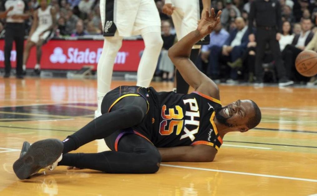 北京时间12月4日,NBA杯太阳主场对阵马刺,杜兰特又伤了,左脚踝90度扭伤,下半场没有首发而且第三节一直留在更衣室治疗脚踝,之后确定退出本场比赛。