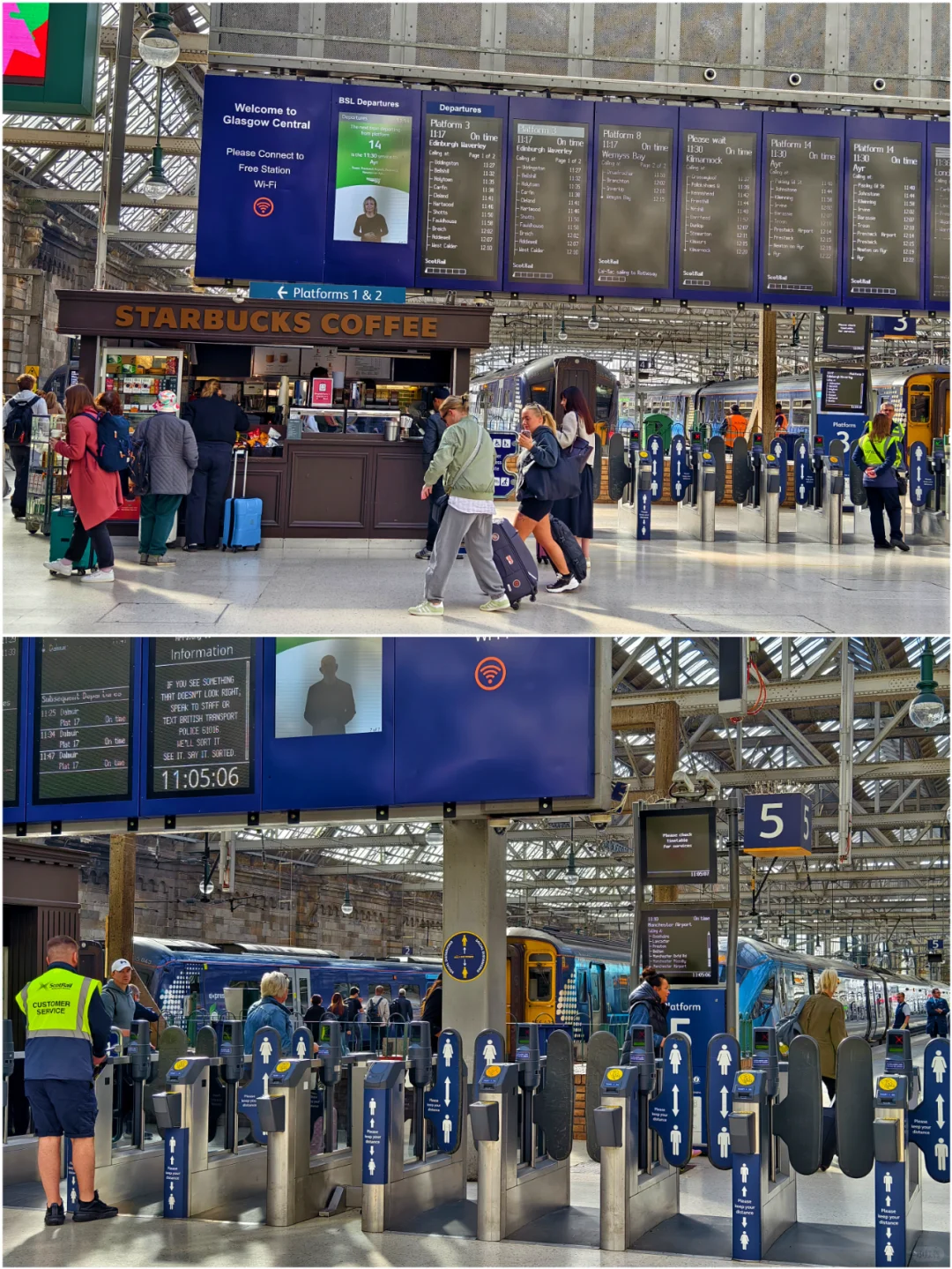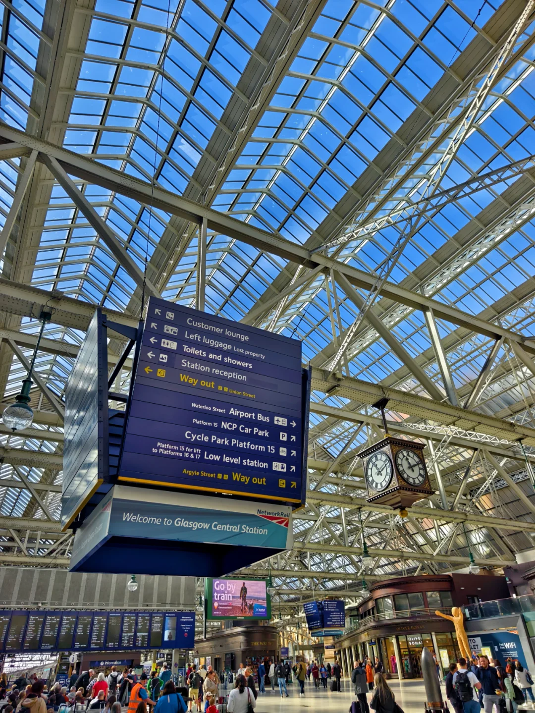 🔥不得不说,英国城际旅行最方便的交通工具就是火车了,像格拉斯哥中央车站这么大的车站,从到站到坐上火车只要5分钟,全程丝滑,没有一个台阶,也没有任何安检。