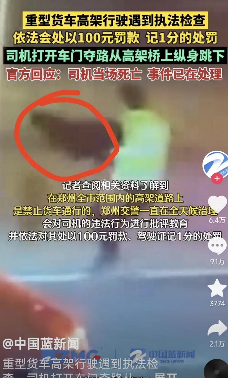 人间真苦,下辈子不来了!郑州高架桥司机跳桥身亡的事件看了真心酸,仅仅罚款100元