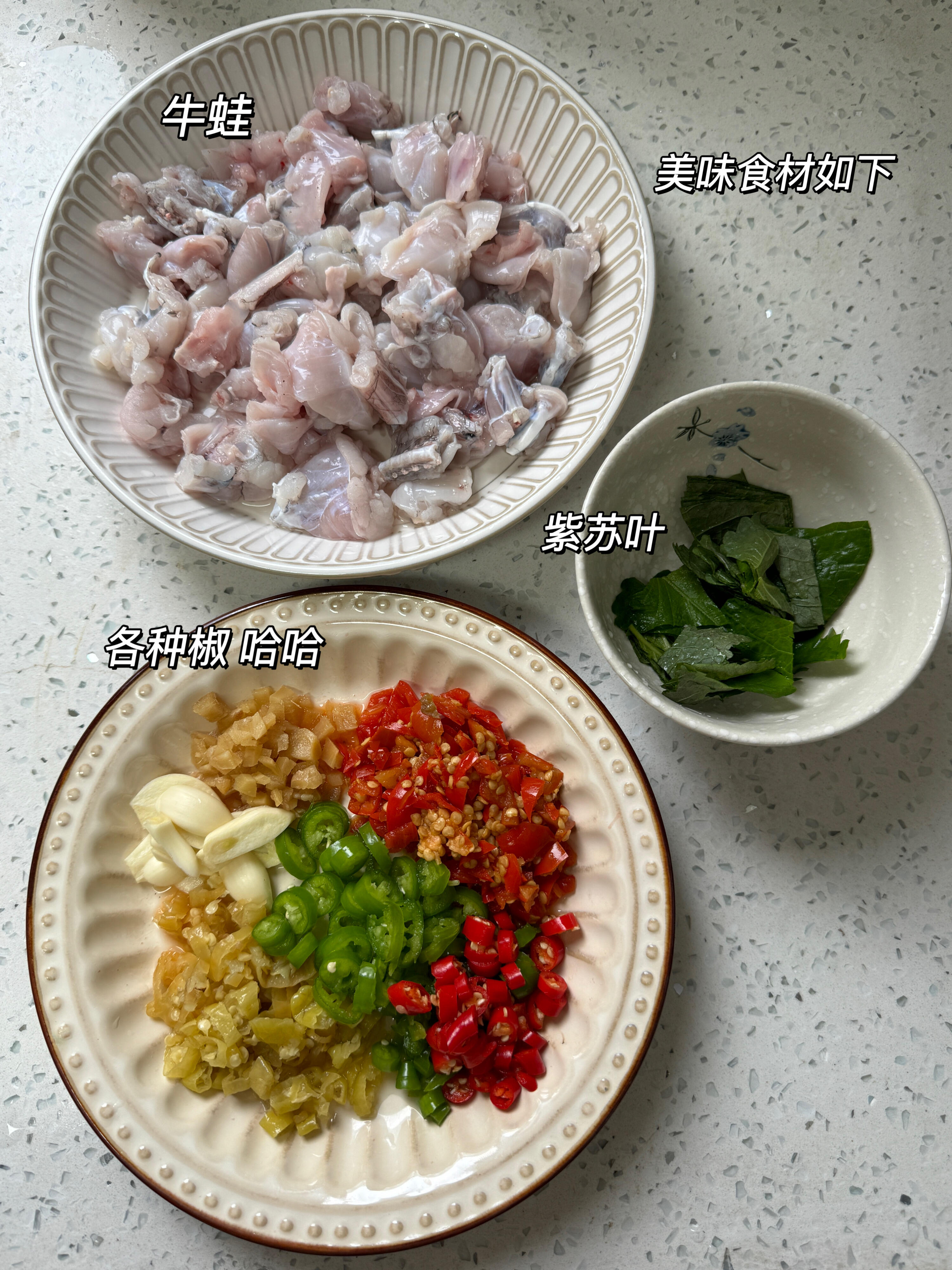 20元全款拿下,心满意足实现牛蛙自由,一分钟带宝宝们学会这道巨好吃巨下饭的泡椒牛蛙,学会了再也不用去外面斥巨资买牛蛙吃啦‼️ 食材:牛蛙3只|泡椒|剁椒|小米辣|线椒|葱段|姜片|蒜片|紫苏叶|啤酒 做法: 1. 牛蛙切块洗净控干水分,放入干净的盘中。