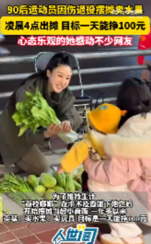 她曾是一名专业运动员,却因伤病不得不退役。在经历了手术和康复后,她选择了摆摊卖水果维持生计,用自己的双手重新出发。视频中,她每天凌晨四点就开始出摊,目标是一天挣到100元。她乐观积极的心态感动了无数网友。