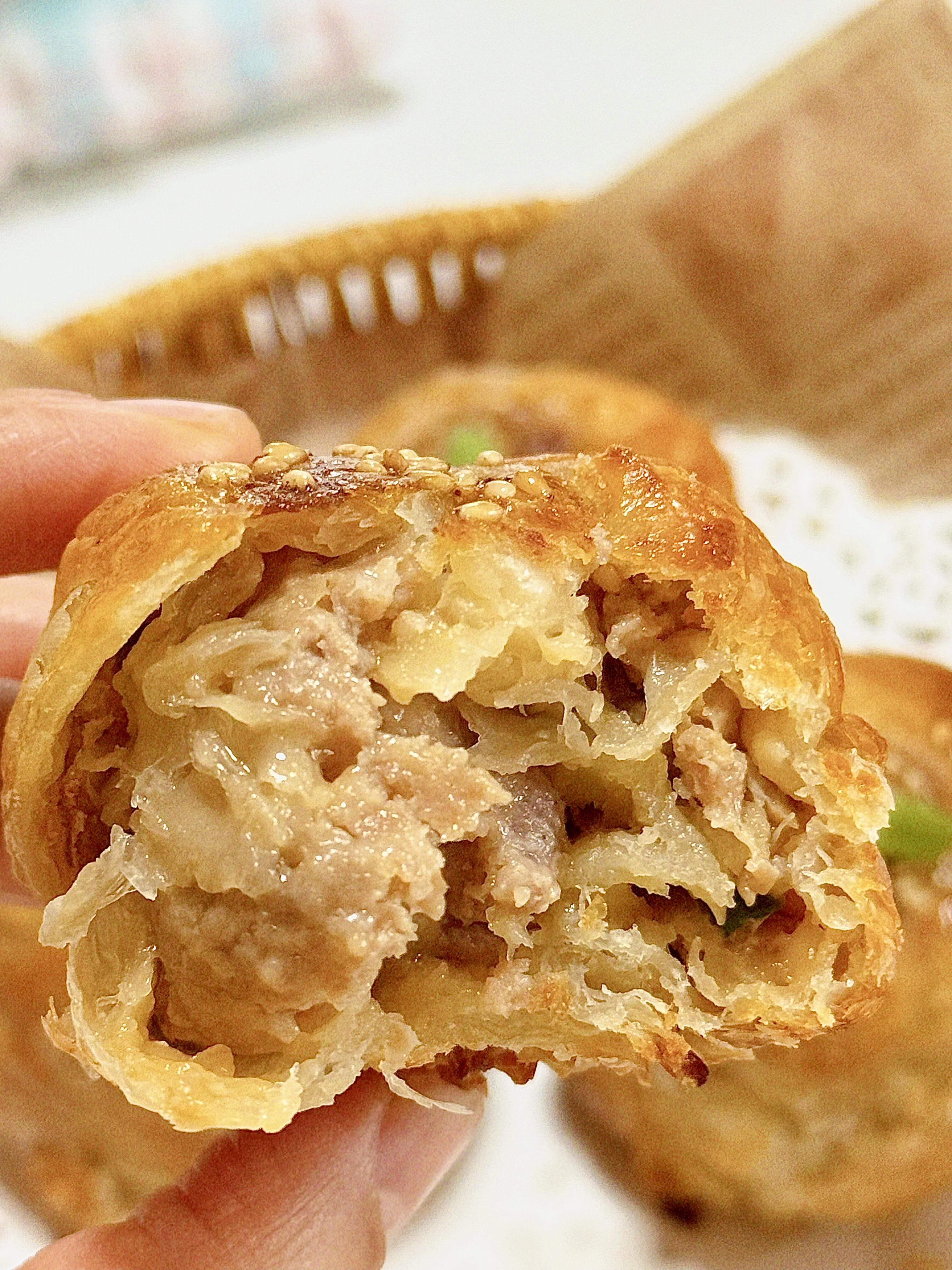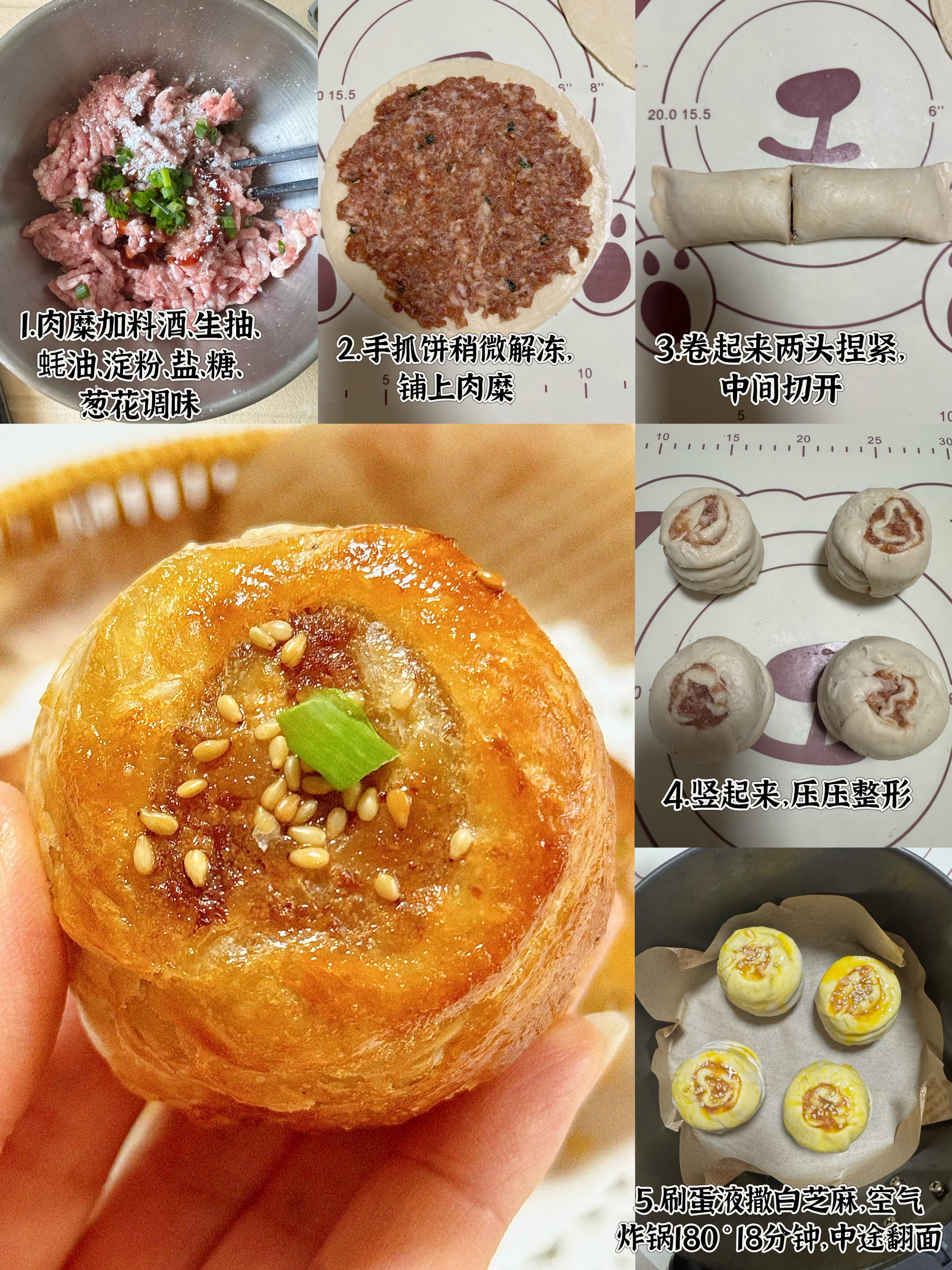 不用揉面的猪肉酥饼,好吃疯了 不用揉面,用手抓饼就能做的猪肉酥饼,外皮是那种很薄很脆的油酥皮,里面裹着满满的肉馅。 一口咬下去,满嘴都是肉香,再咬一下,里面的汤汁就爆出来了。这味道简直不要太满足! 手抓饼做的猪肉酥饼,用空气炸锅一烤(当然也可以用烤箱),外酥里嫩,满口留香,特别好吃。 所以,你也赶紧动手做起来吧!