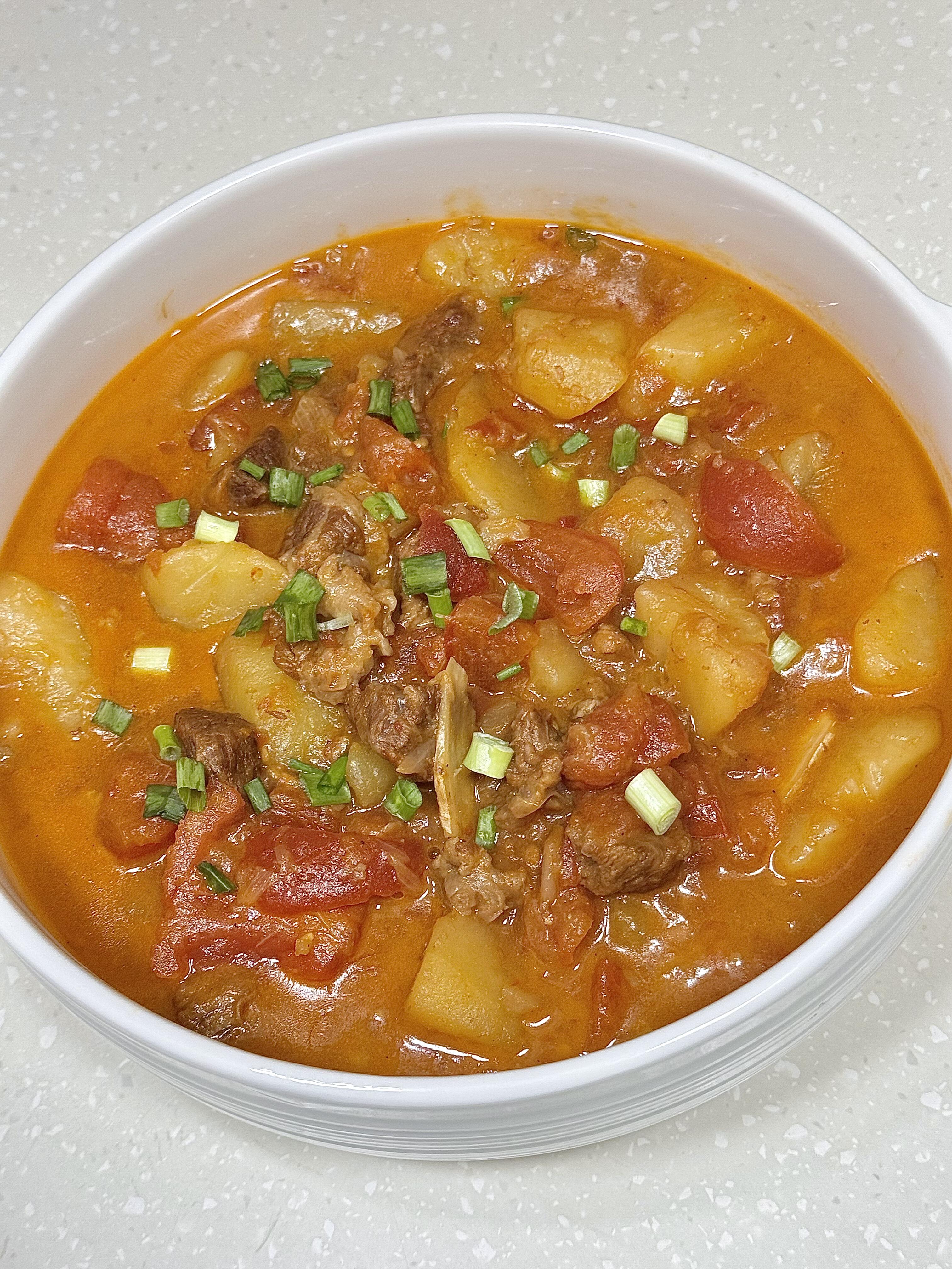 番茄土豆炖牛腩,软烂入味,汤汁浓郁