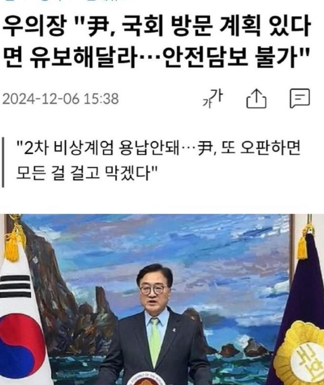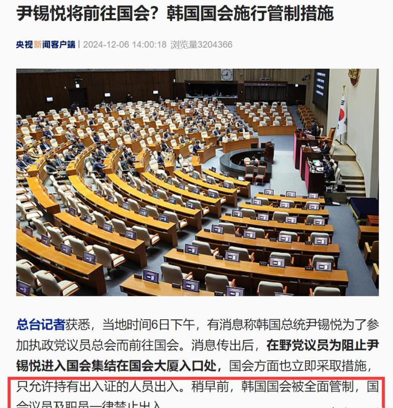 根据央视新闻报道,12月6日韩国国会再次被全面管制,禁止国会议员和一般职员出入。同时有消息称尹锡悦会前往国会做说明。不过尹锡悦的这个举动直接遭到了韩国国会议长禹元植的拒绝,他表示,“尹锡悦你别来,现在来了无法保证你的安全。”这实际上是一个半带威胁的意思。
