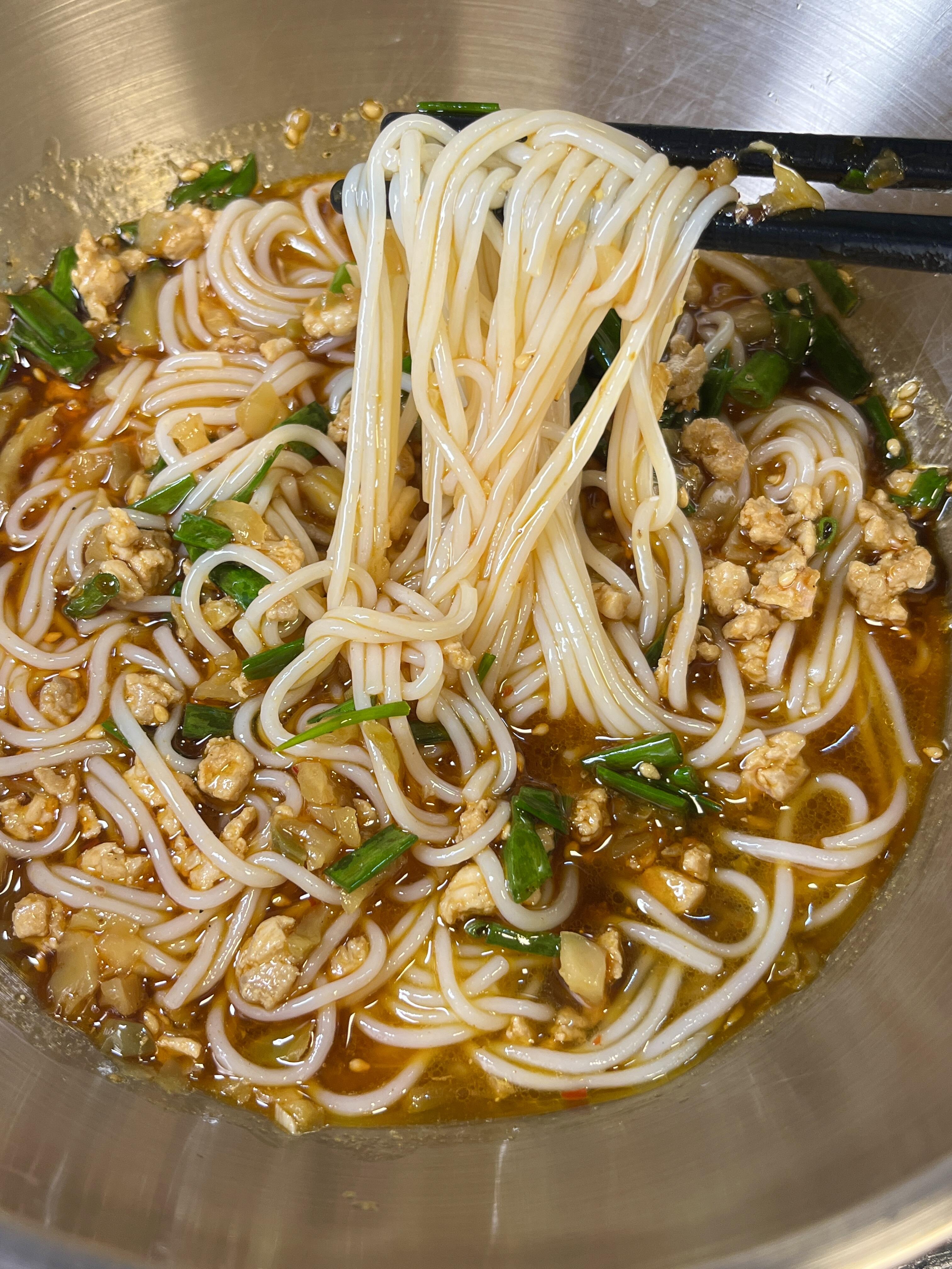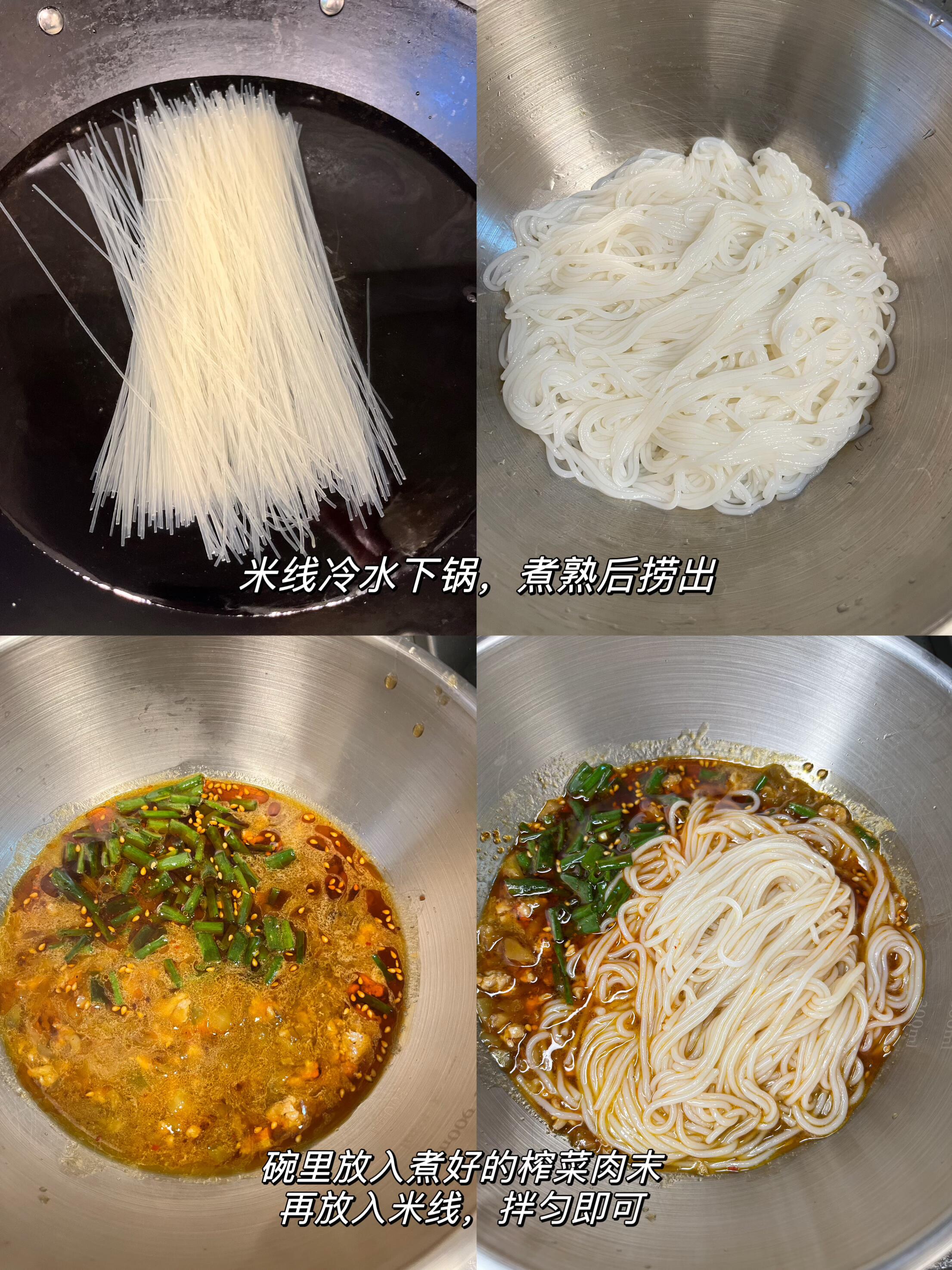 啊啊啊啊啊。完全拒绝不了这碗米线~ 天气冷啦,来一碗热腾腾的米粉吧~ 太过瘾啦!吃完整个人都暖呼呼的 做法简单,几分钟就搞定了 1、热油爆香蒜末,放入肉末滑散至变色,放入榨菜炒香,然后放生抽、蚝油、鸡精调味。加一碗水煮开 2、碗里放红油、花椒粉、葱花,倒入煮好的榨菜肉末,再放入煮好的米线,拌均开吃!!!