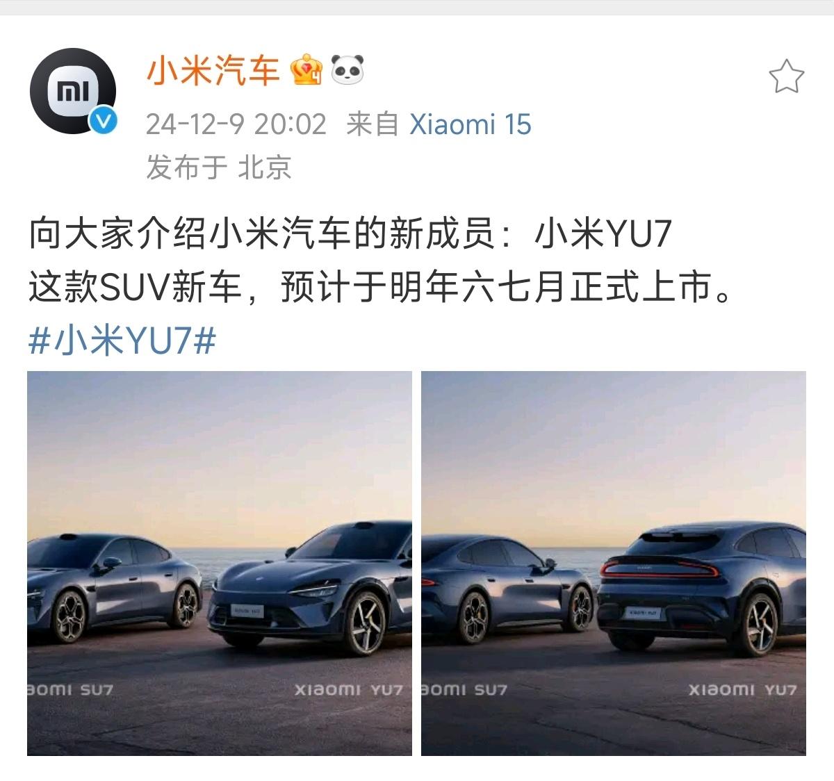 这下事情闹大了! 本以为雷军官宣小米YU7已经是王炸 没想到细节才是底牌!重点这几个亮点没有想到 1:对手,从外观角度来看属于SUV,但是低趴造型又有点像轿跑。目前这个区间是智界R7、特斯拉Model Y。但是外观好看太多了 2:外观长的像谁,我现在发现说小米SU7像保时捷的,对于小米反而是褒义词。SUV是直接升级到了对标法拉利的FUV,500万甚至600万起步。反正只要模仿的像,作为平替不是问题,何况小米自研的智能驾驶,科技感十足 3:长宽高4999×1996×1600mm 轴距3000mm,五座中大型SUV 前后双电机四驱,功率220kW+288kW(V6+V6s),最高车速253km/h。同时预计六七月份上市 大家觉得多少钱合适