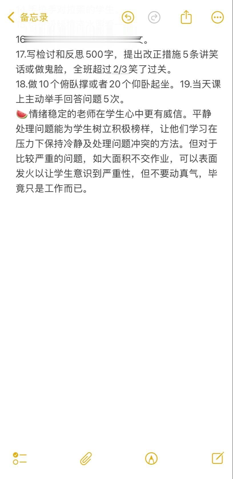 🍉事先立规矩,学生犯错后平静执行规定,比如半开玩笑地指出问题,像“大家看谁谁变成睡美人了啊”,这样学生容易接受,避免冲突。