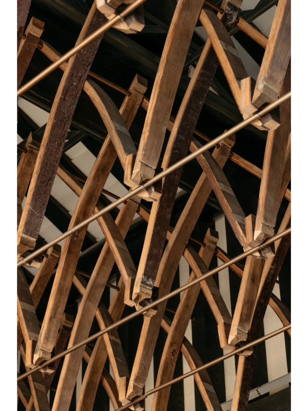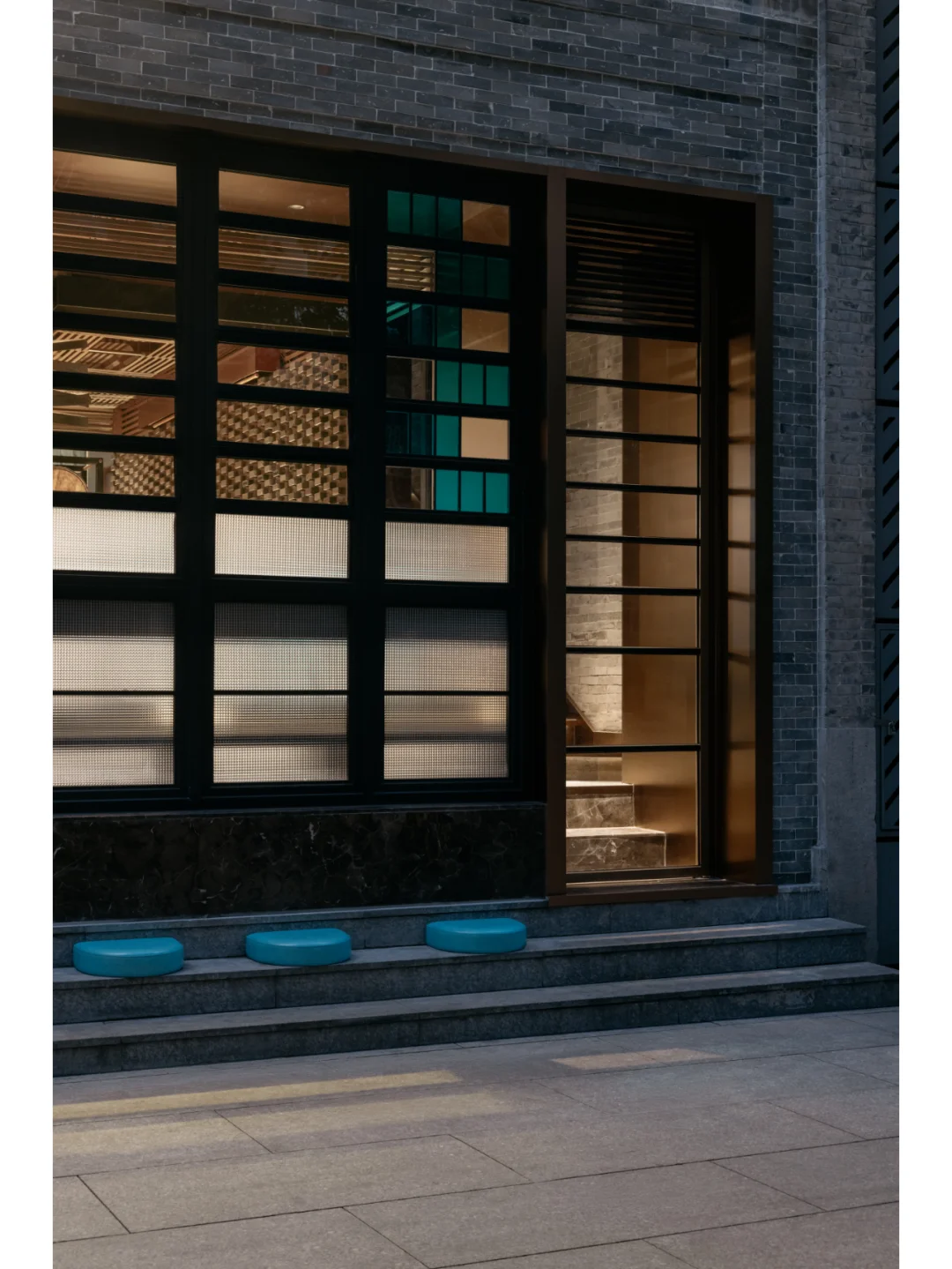 设计师于崃州吧的建筑中间设置了能通风的天井与具有散热冷巷概念的楼梯,成为天然的换气组合;抽取广州骑楼的特色概念,转化于1层五根黑色立柱的意象之中,透过镜像的设计方式,将多个功能区结合形成环绕式的共享空间。
