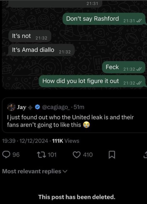 如果说之前大家怀疑林加德,那么毫无疑问有习惯性这么做的媒体联系到了加纳乔,然后这位愣头青就这么做了,个人猜测开出的条件是利用媒体的影响力去保护加纳乔的声誉,那么问题就好玩了。