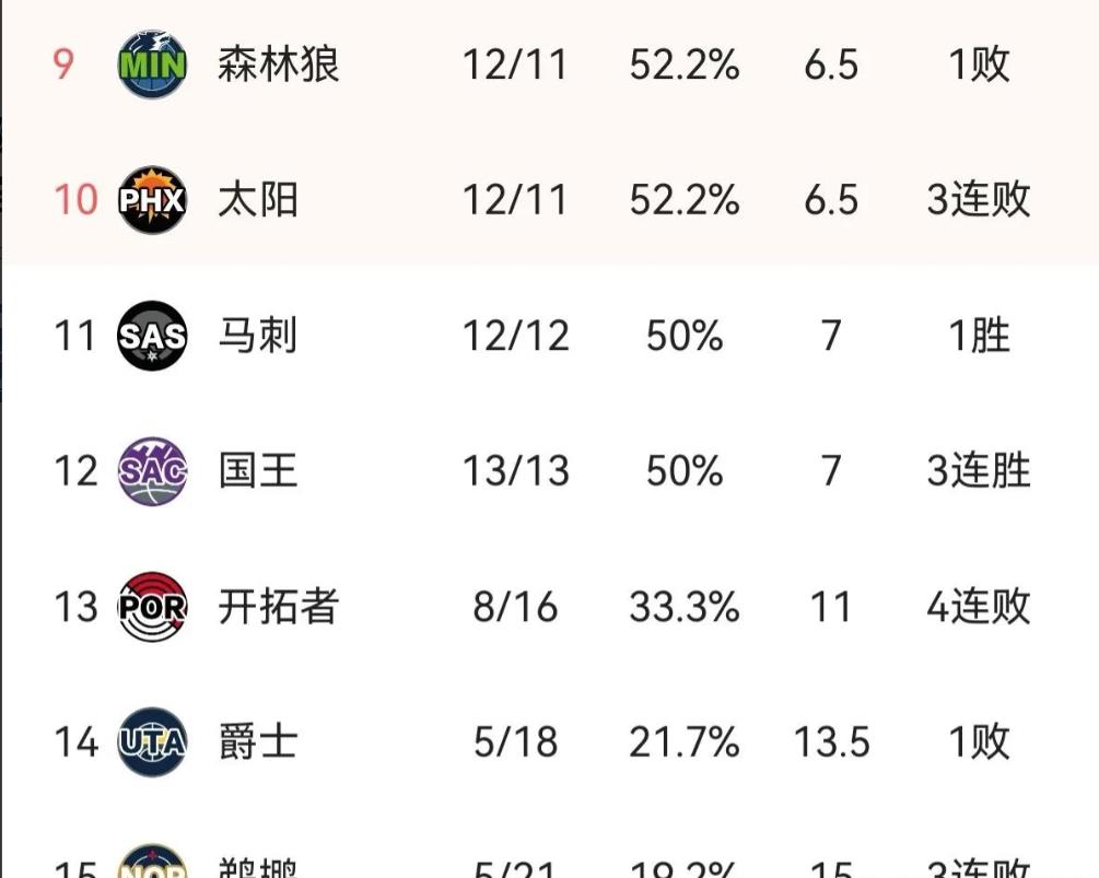 在最新一期西部排名榜上,雷霆高居榜首,傲视群雄;后三名开拓者、爵士、鹈鹕基本可以提前宣布出局,但中间11支球队却异常激烈,竟然高达4组并列,卡位争夺战已经提前进入白热化状态。