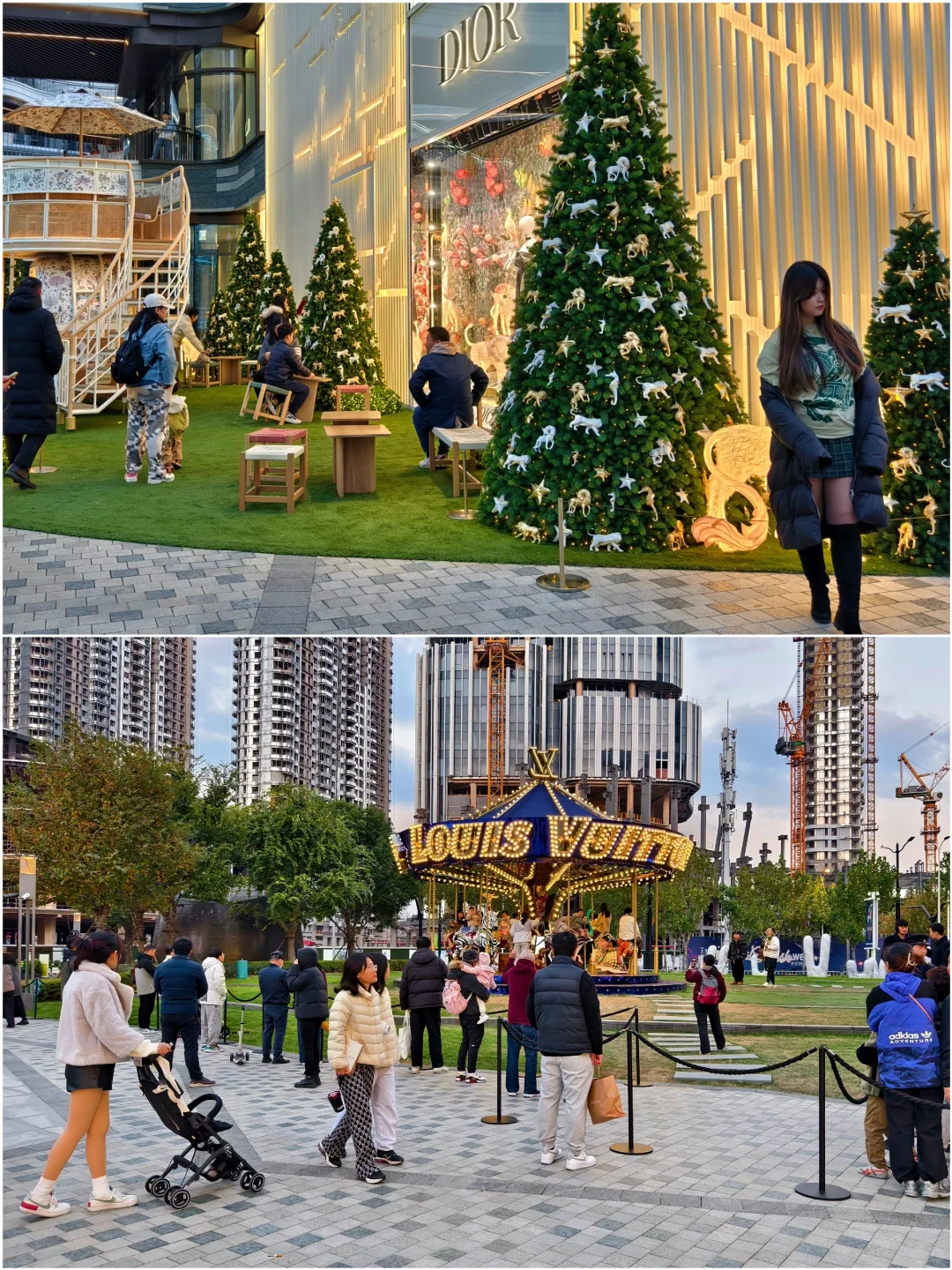 🔥前滩太古里的圣诞装饰来了!有LV旋转木马,还有DIOR独角兽等等,快带小朋友来打卡、坐坐木马吧。 🎠 木马运营时间: 周一至周四 11:00-20:00 周五至周日 11:00-21:00 🔥2024年巴黎奥运会期间展出的雕塑艺术作品,《美与姿态》,由法国艺术家洛朗·佩博斯以著名的古希腊雕塑《米洛的维纳斯》为灵感创作,也来到了中央广场大台阶上。 🔥很多人来打卡拍照,连狗狗猫猫等萌宠来了。有的人为了美丽,真的不怕冷啊。