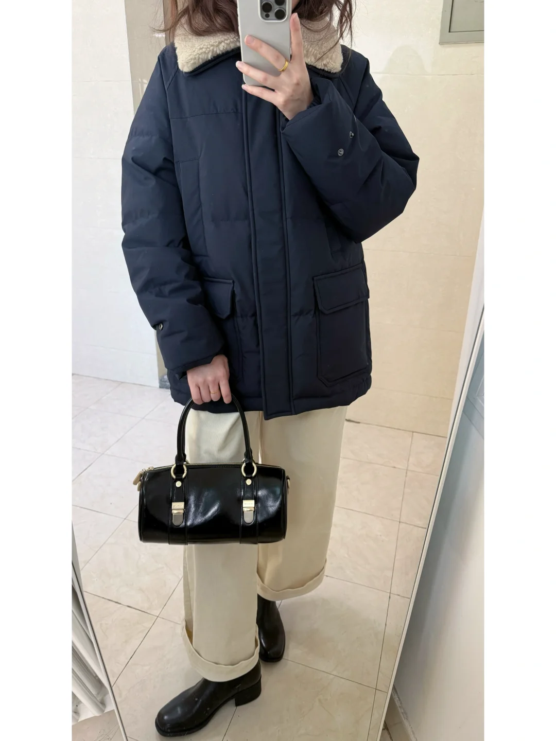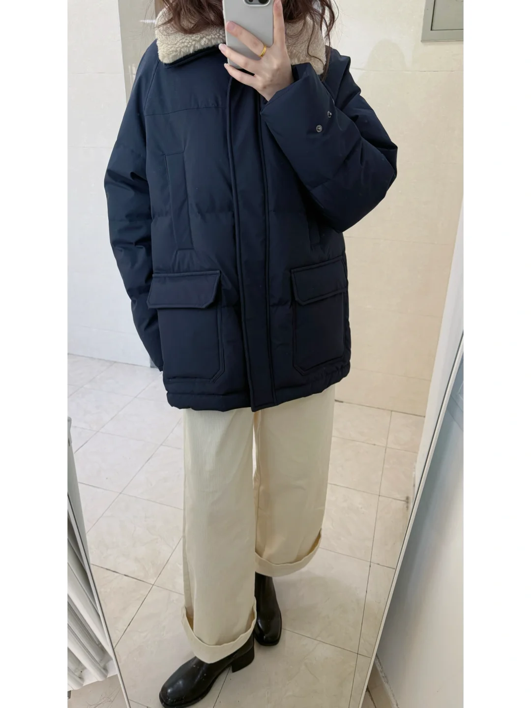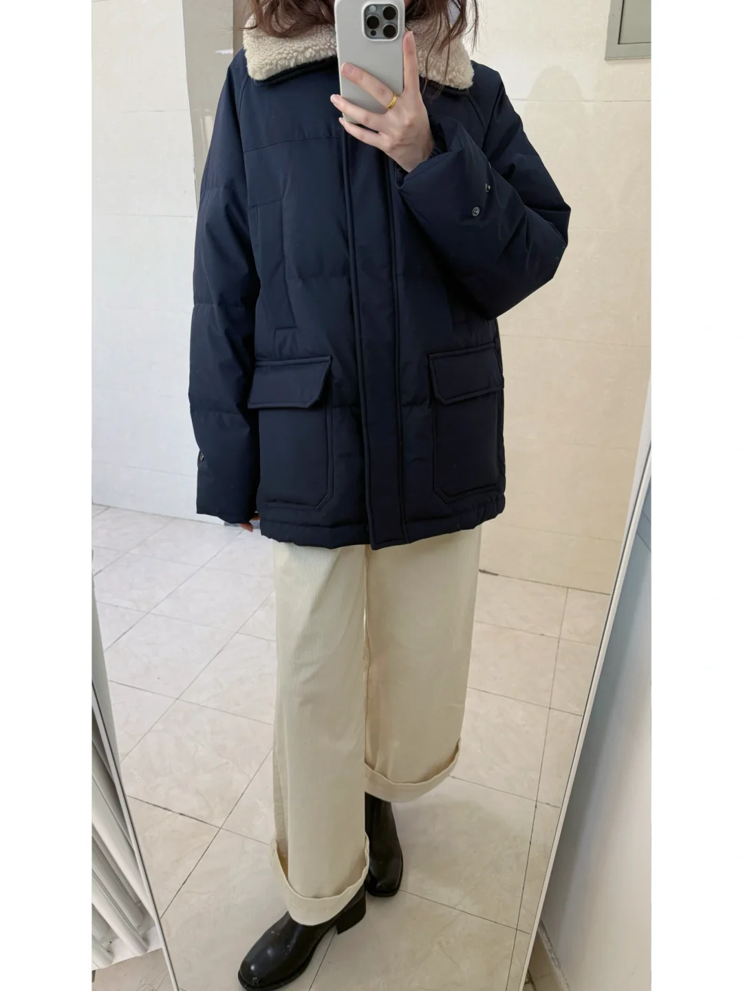 过冬穿什么/藏青工装羽绒
