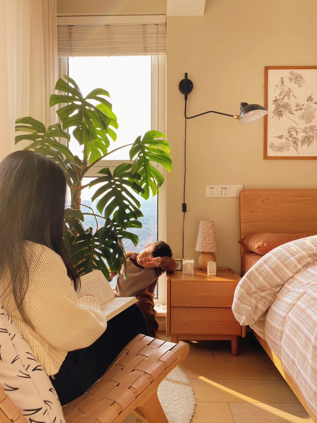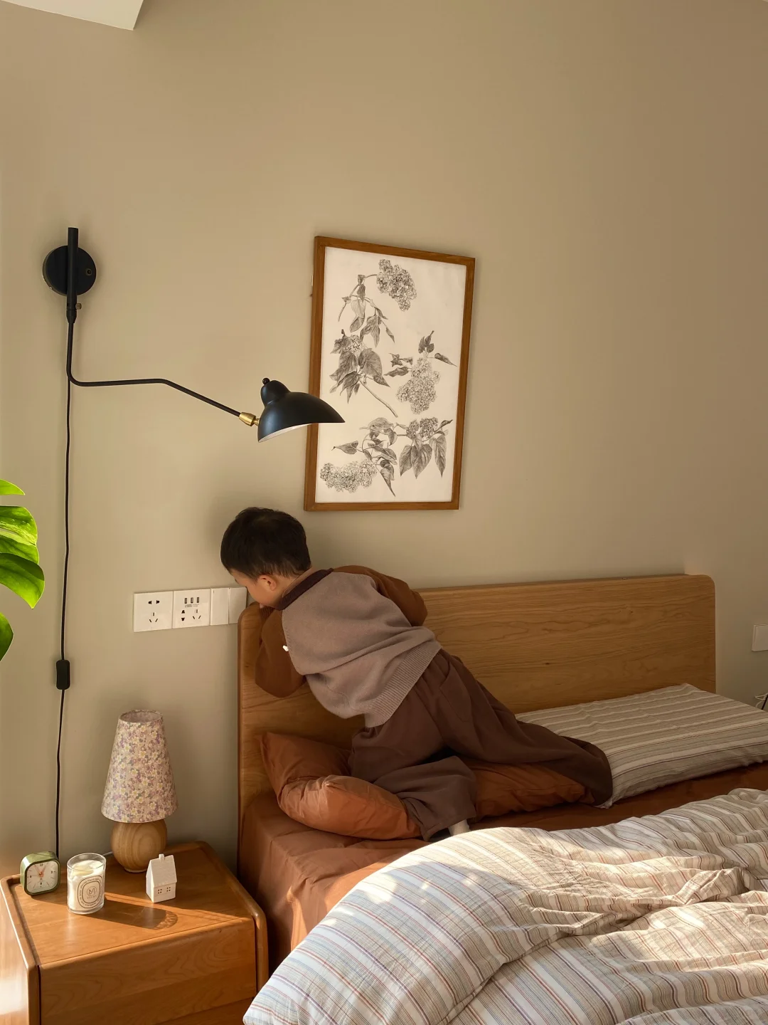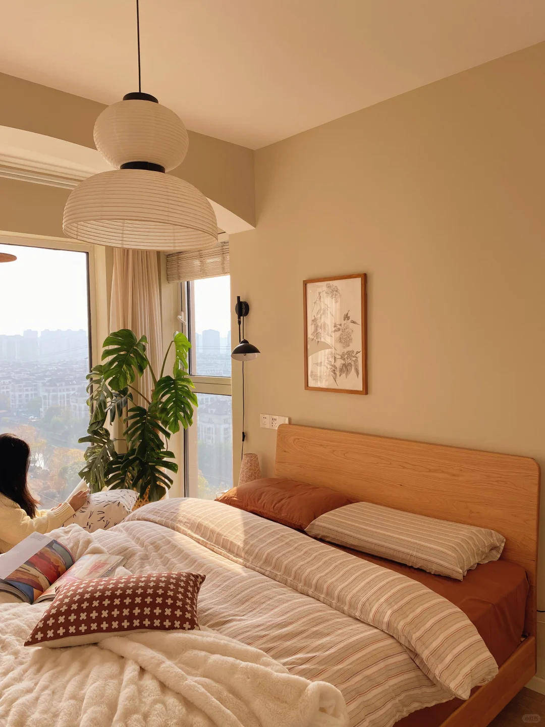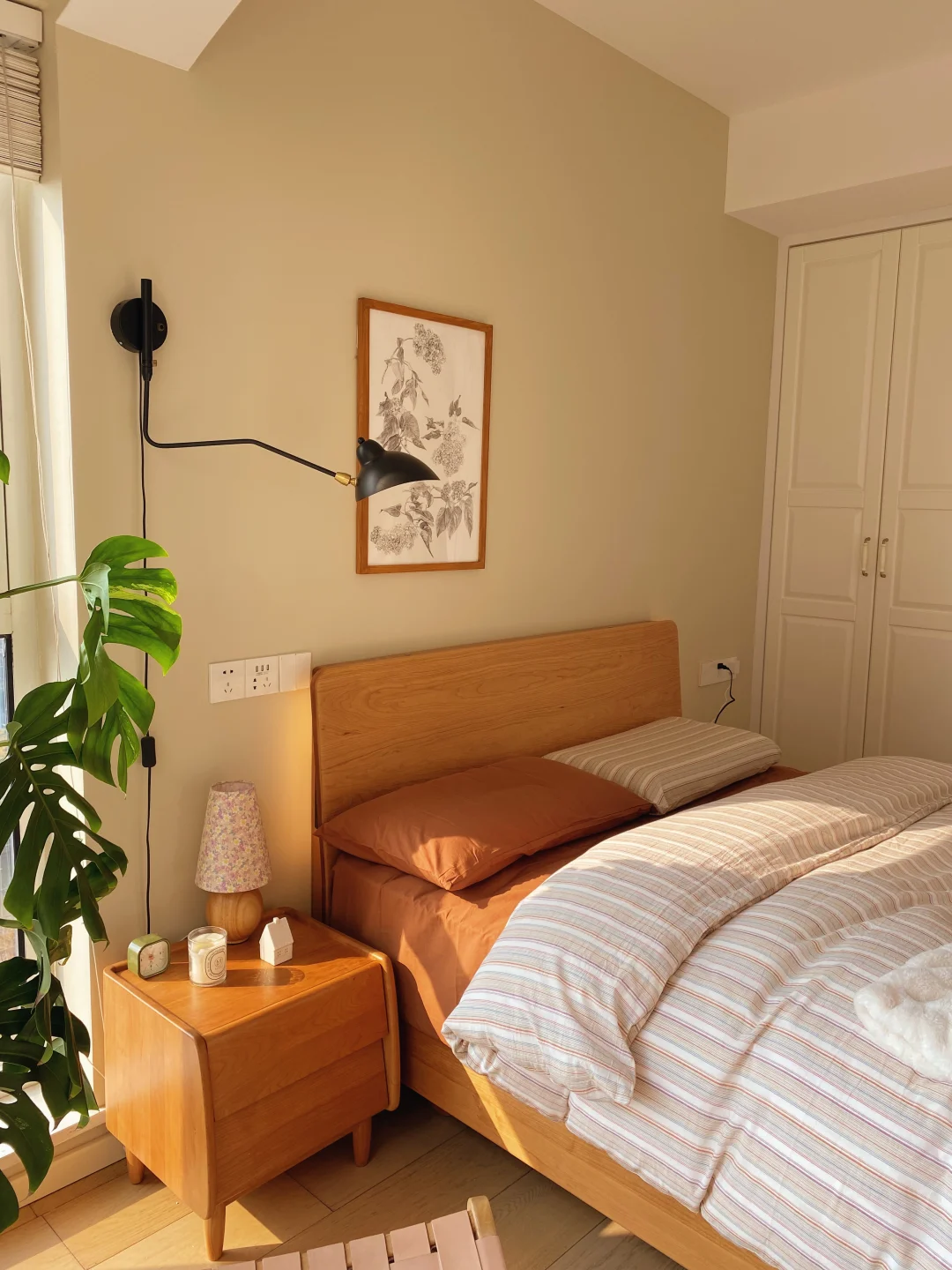 🛏️原木风是我家整个家装的核心,原木的自然纹理总能让我回归大自然,感受这些实木带来的平和宁静,卧室也一样,简单的墙面搭配一张实木床就已经很舒服了。