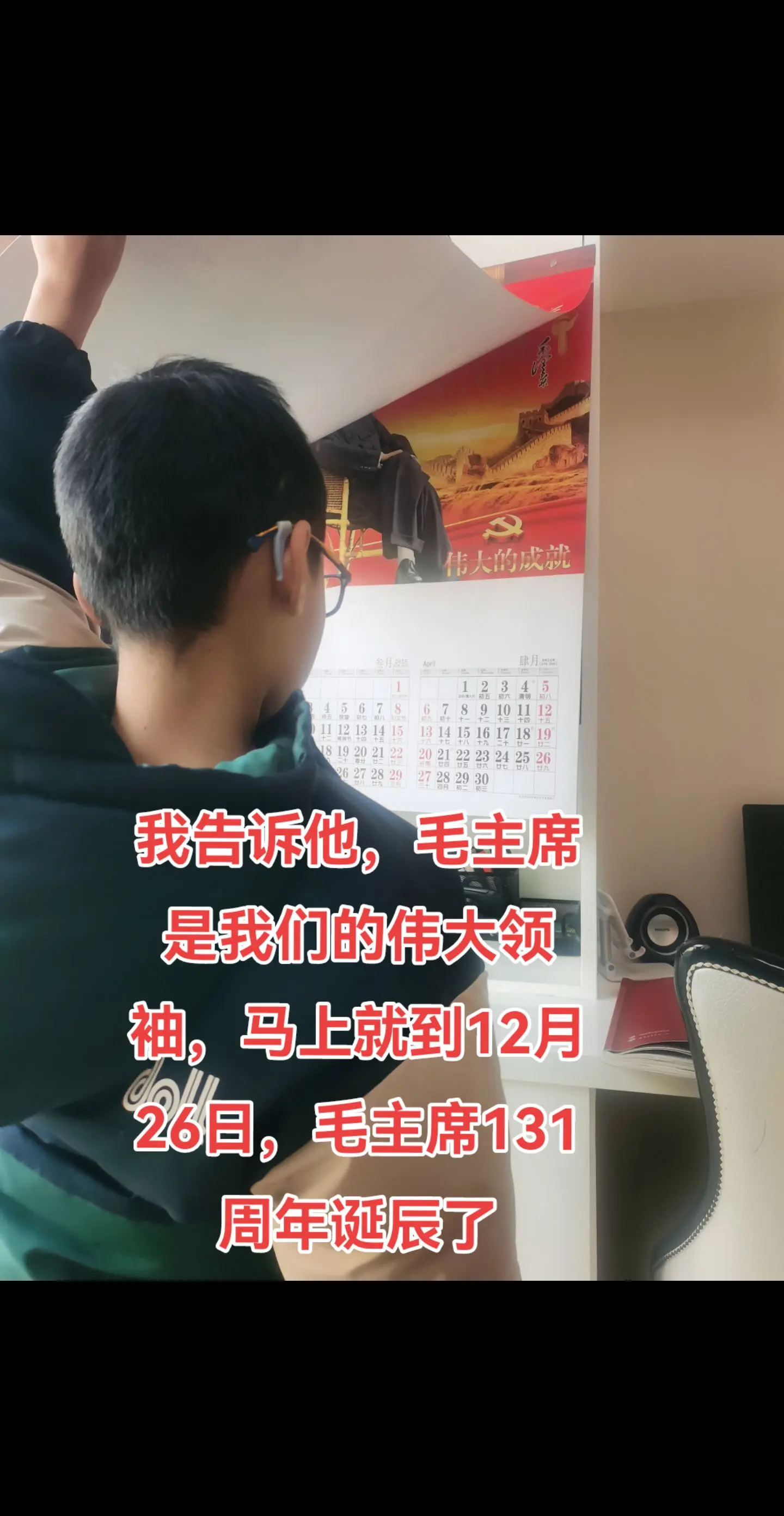 他看着毛爷爷挂历陷入沉思。马上就到12月26日,毛爷爷诞辰131周年了...