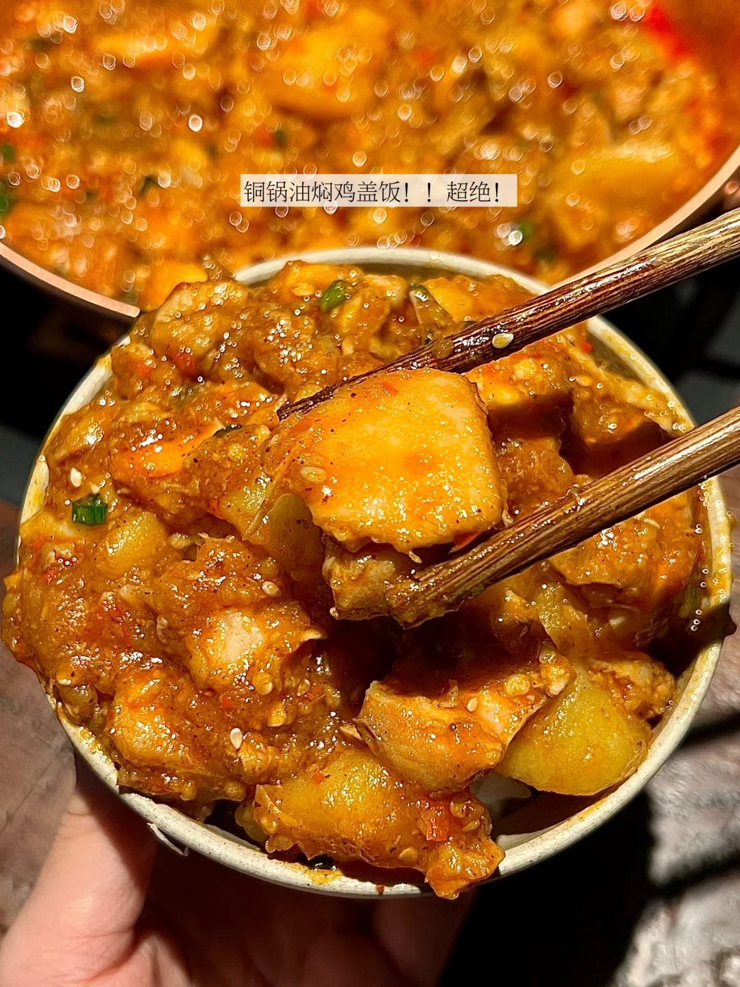 🍗铜锅油焖鸡配烤糖饵块(招牌必点
