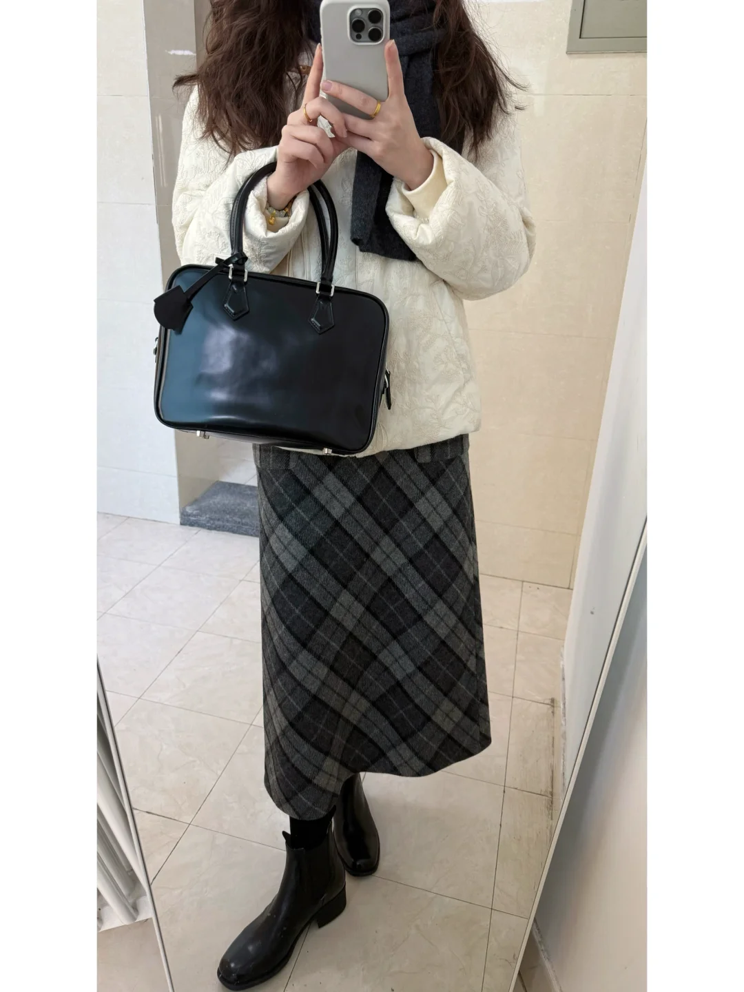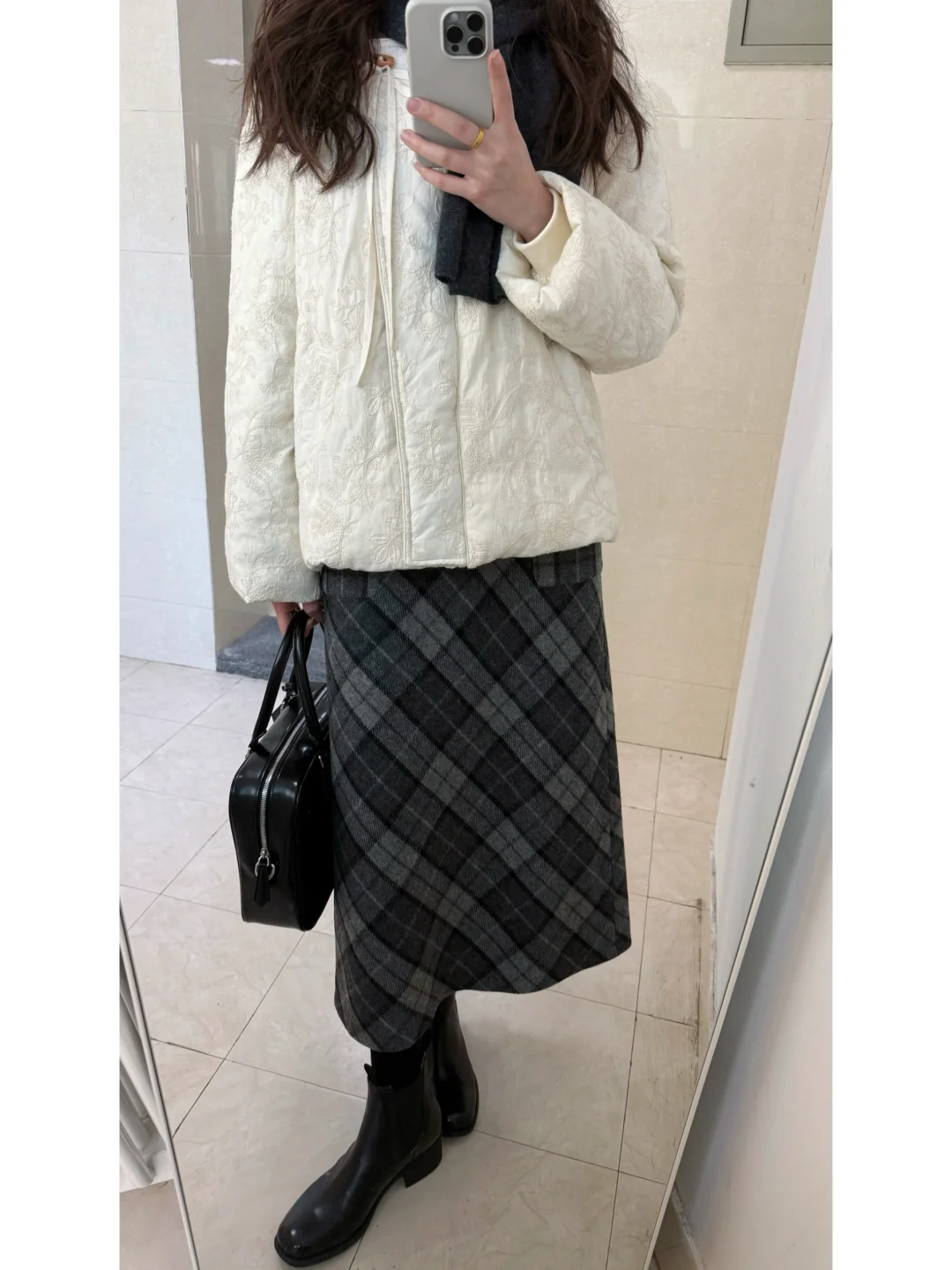 通勤穿什么/ 深灰围巾大衣