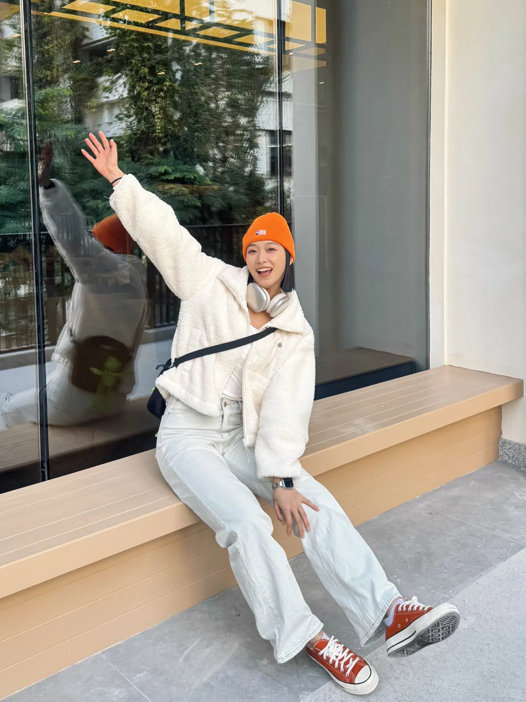 休息日! 去公司的新店看了一下 超级漂亮 期待开业可以来上芭杆嘿嘿嘿[哇R] 周六芭杆发布会 评论区我看看都谁报名了[哇R][哇R] 降温前连续阴天 降温后天气好得不行 但早晚温差大出门记得带外套喔 羊羔绒外套我安排上了 暖暖的 很贴心❤️ 哈哈哈哈哈哈哈哈 今日休闲穿搭 🧢:NBA 👚:NEVA HU 🧥:konikoni 👖:PAPERLLL 👟:Converse 178/60kg
