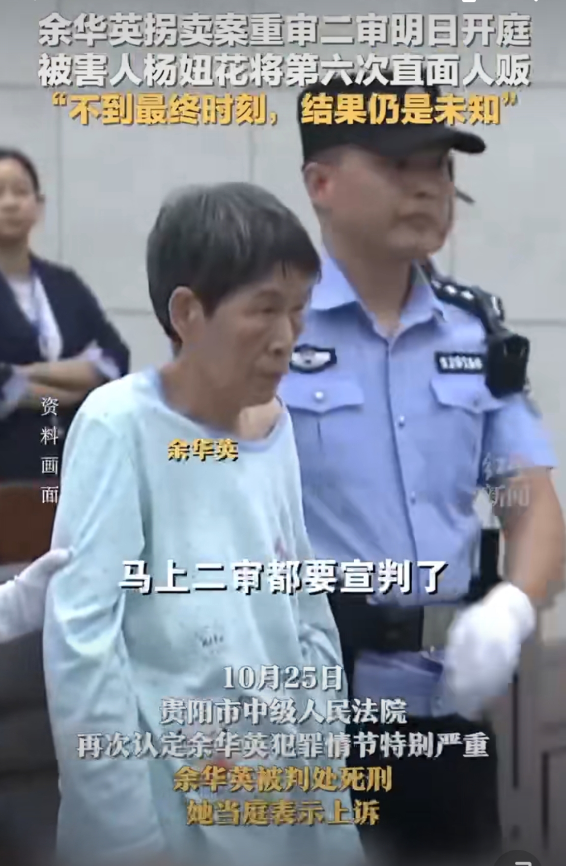 2023年9月18日,贵阳中院一审判决余华英犯拐卖儿童罪,情节特别严重,影响特别恶劣,一审判处余华英死刑,剥夺政治权利终身。