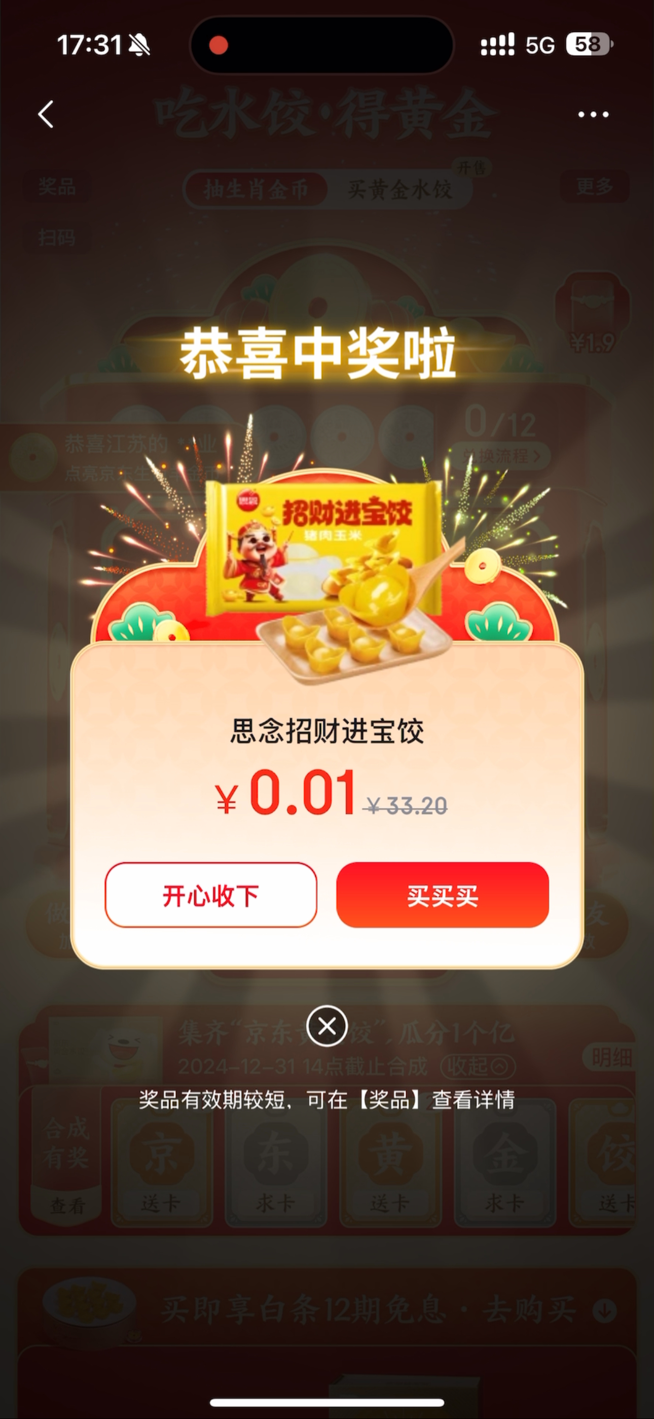 omg!我竟然1分钱抽到了虾皇水饺!咱就是说真的是欧皇附体势头正盛了!