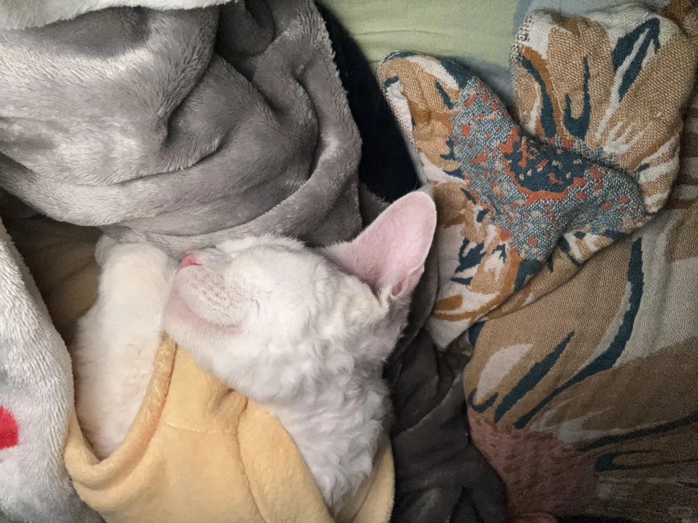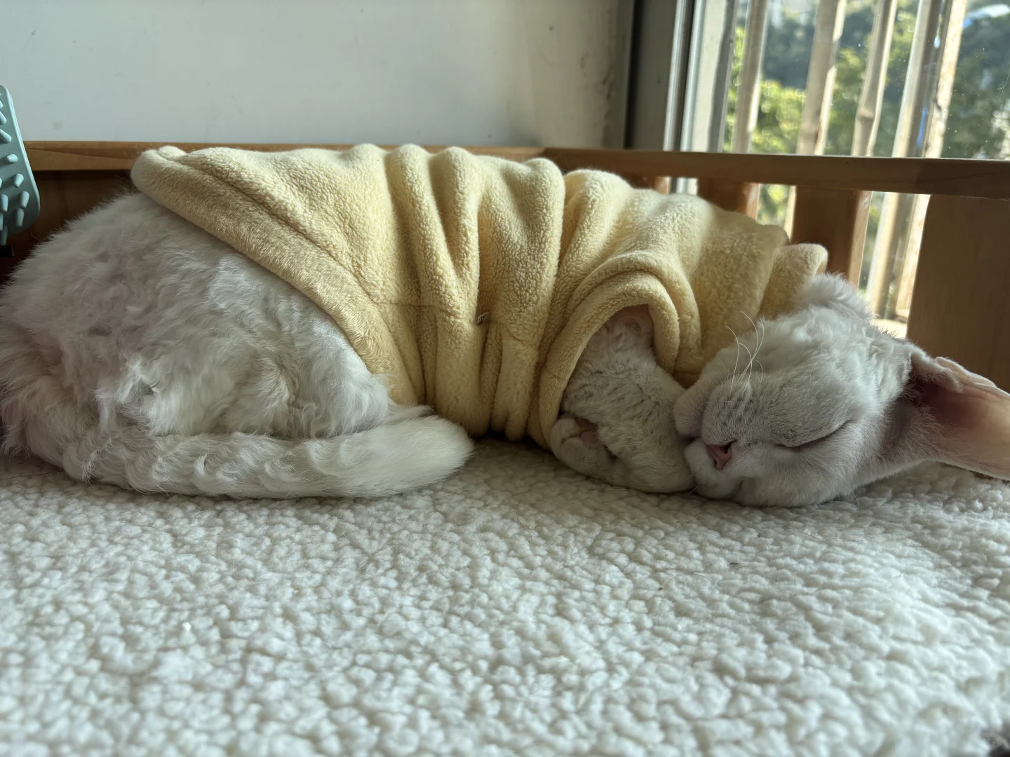 我家宠物好可爱 宠物睡姿大赏 猫咪 冬天的床上会长猫 被窝里长猫啦 德文卷毛猫