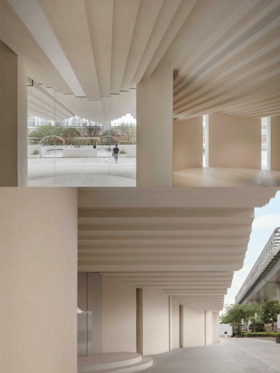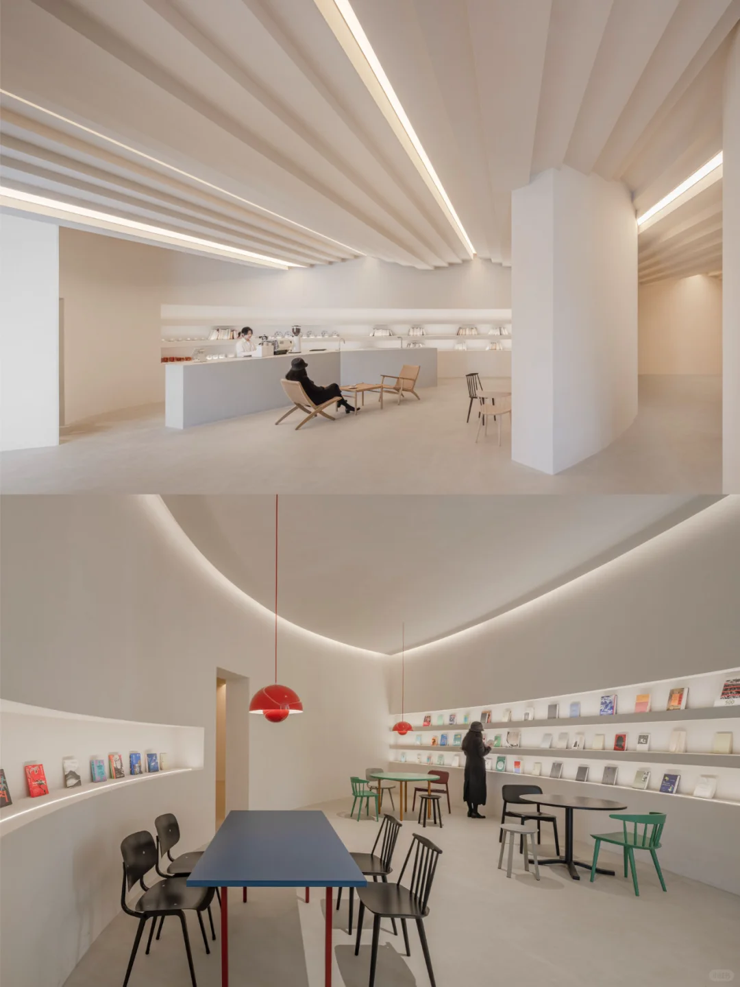 从建筑外部延伸串联整个室内场域,形成一系列艺术文创展示空间,包括艺术展览、手作工作坊、多媒体影像、设计沙龙与咖啡茶饮等,而建筑本身也与内部自由流动的墙体,发生形式之外的空间互动,从而体现传统与现代之间的转译关系。