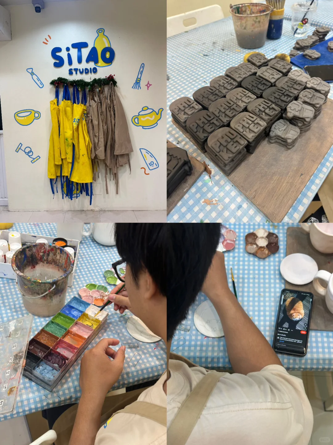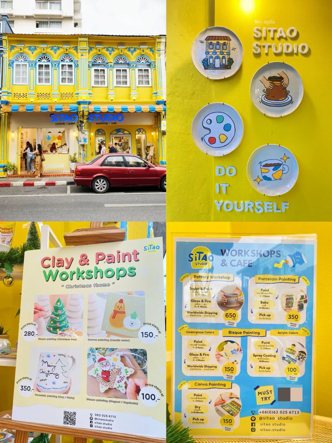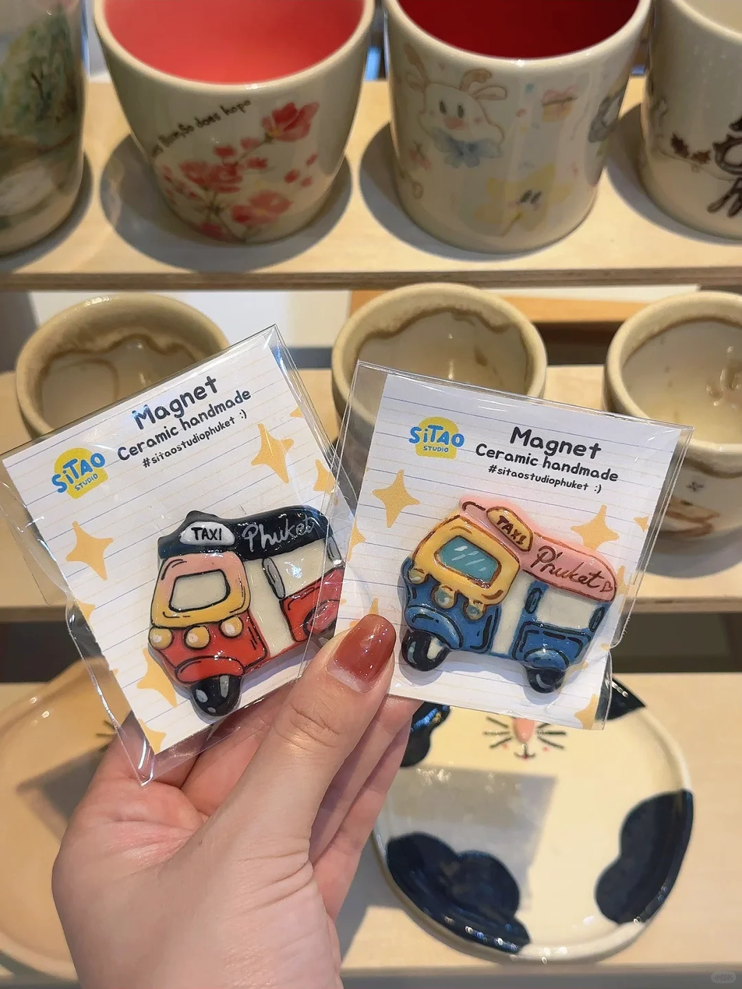 被网上超火的彩色双条车陶瓷冰箱贴吸引,一路找到了这家位于普吉镇的SitaoStudio。果然没让我失望💛这里不止是一家陶瓷手作店,还是一家咖啡甜品店🍧