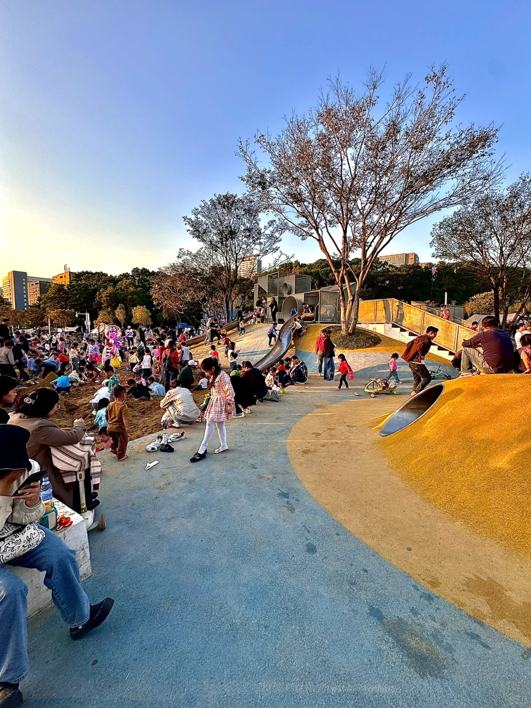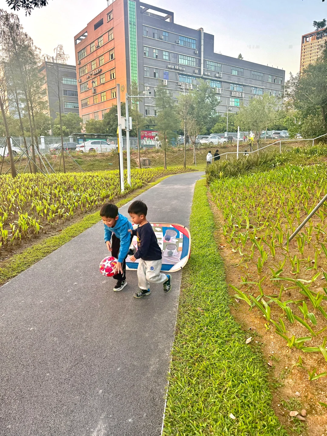 😱哎呀,刚到公园门口我就想转身回家了,这人也太多了吧!但俩娃死活不肯走,非要进去玩。没办法,我只好硬着头皮陪他们浅玩一下。😕滑梯沙池那里人多得简直连落脚的地方都没有,就玩了几次,我真的特别担心孩子会磕着碰着。后来干脆找了个人少的地方踢了一个小时球⚽,最后开开心心地回家了😁