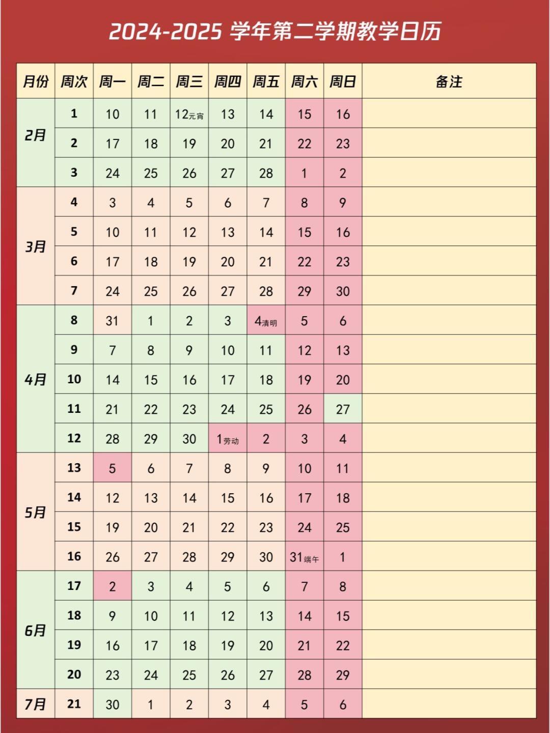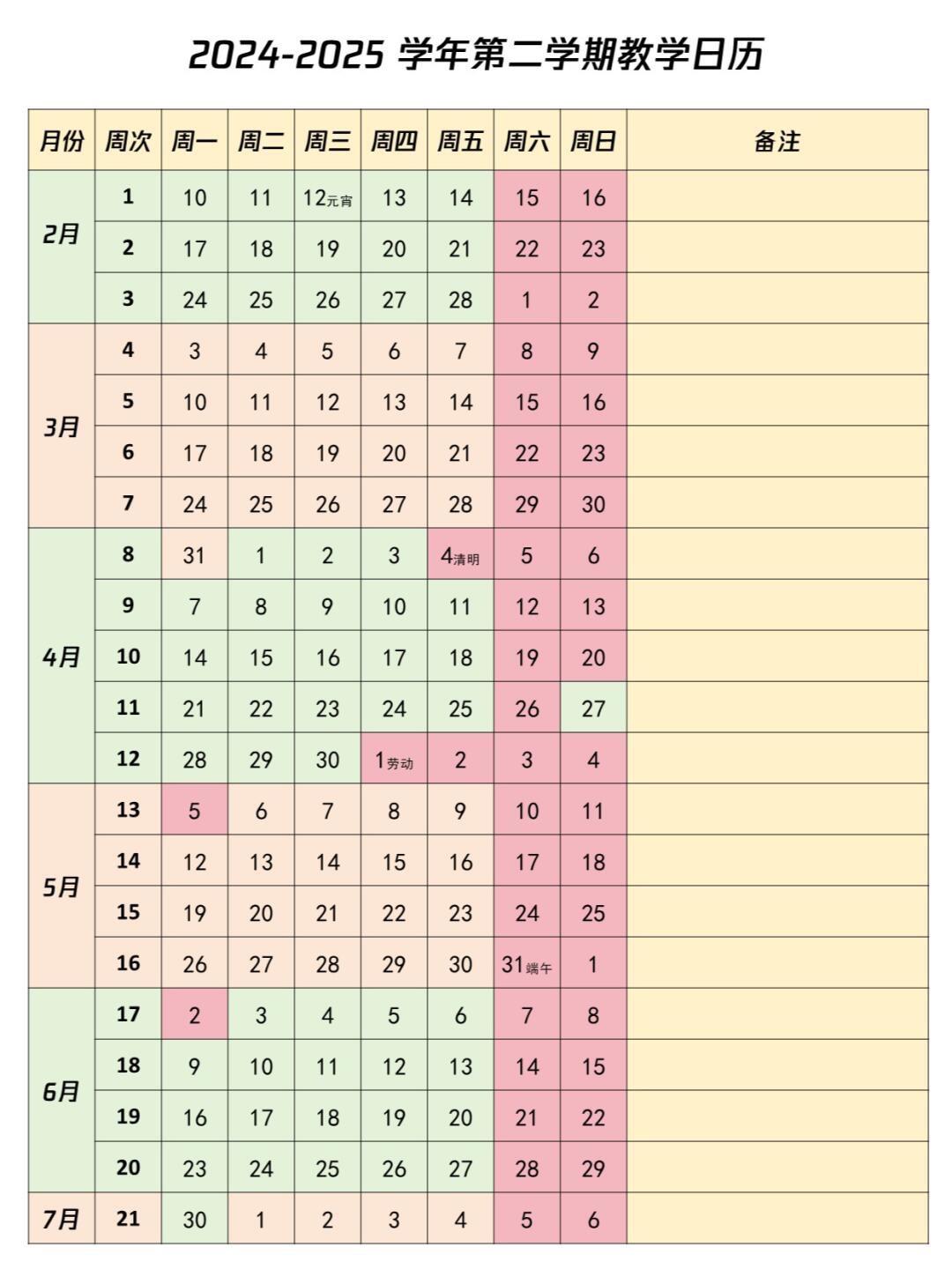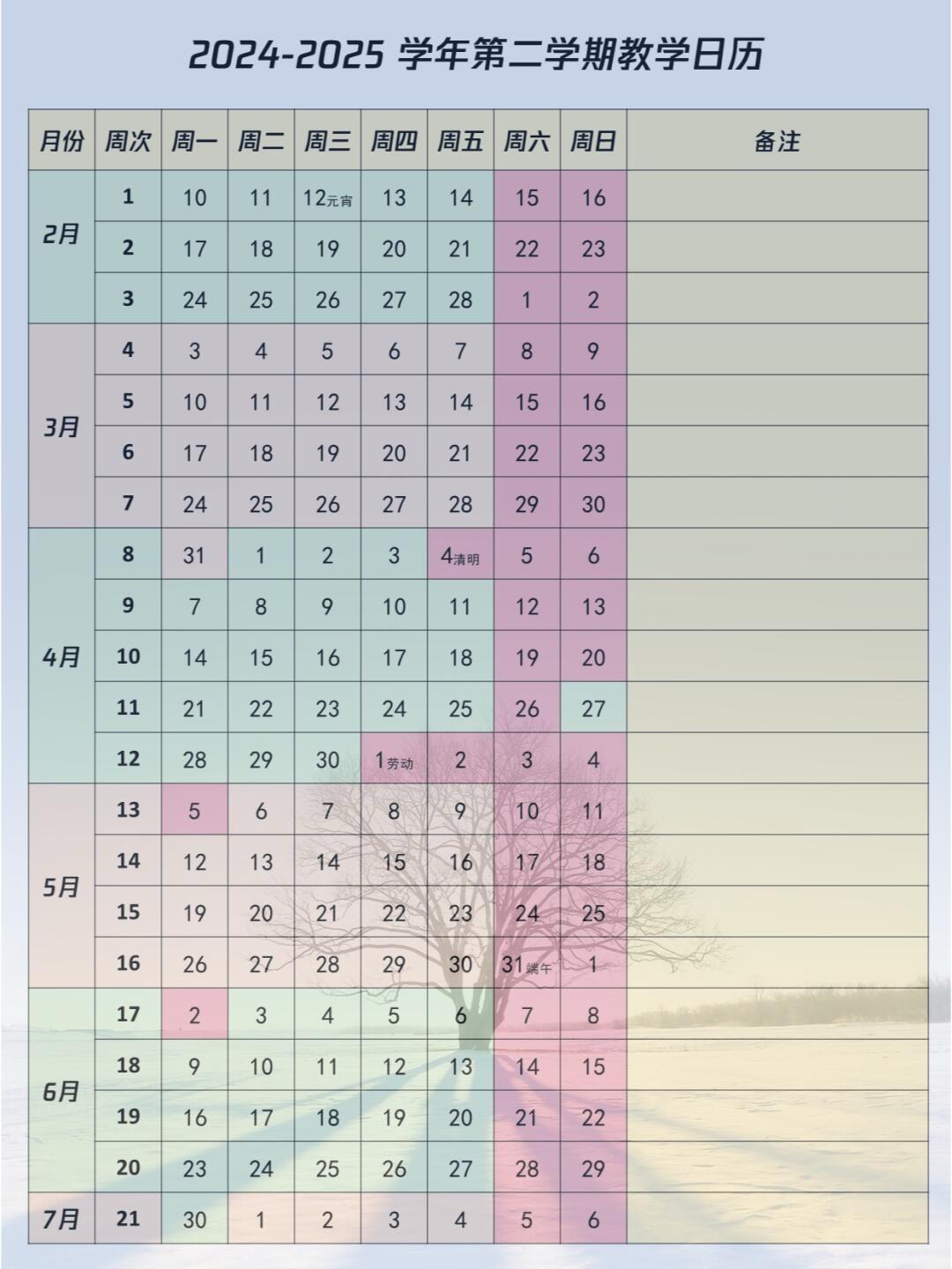 新学期续命表~~~~新学期续命表~2025年春季义务教务工作校历|||2024-2025学年第二学期 ⏰ 开学时间 2025年2月13日 ⏰ 暑假开始时间 小学、初中:2025年7月7日