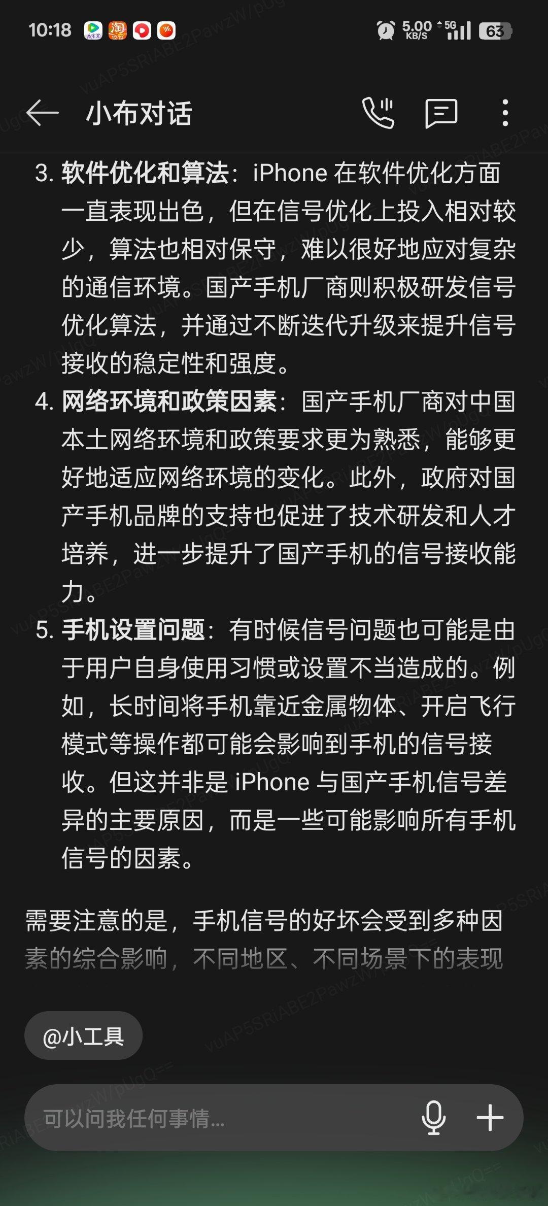 为什么iPhone信号不如国产手机 刚刚问了一下小布,它是这么说的: