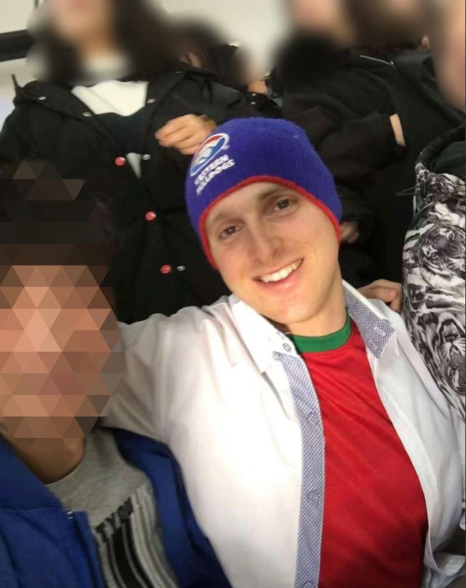 从公开资料看,此人叫奥斯卡·詹金斯,今年32岁,自述曾在中国生活9年,在天津某高校当过大学老师。有他的学生发出了合影(图3和图4),说他2018年还在天津教书,不知道什么时候就去了乌克兰打仗,还调侃他“天天练跑步也没跑过俄军”。