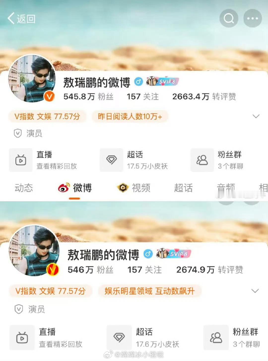 看样子还是不错的嘞!!敖瑞鹏也是有金v的人嘞!!这也证明我哥是好起来了啊!!
