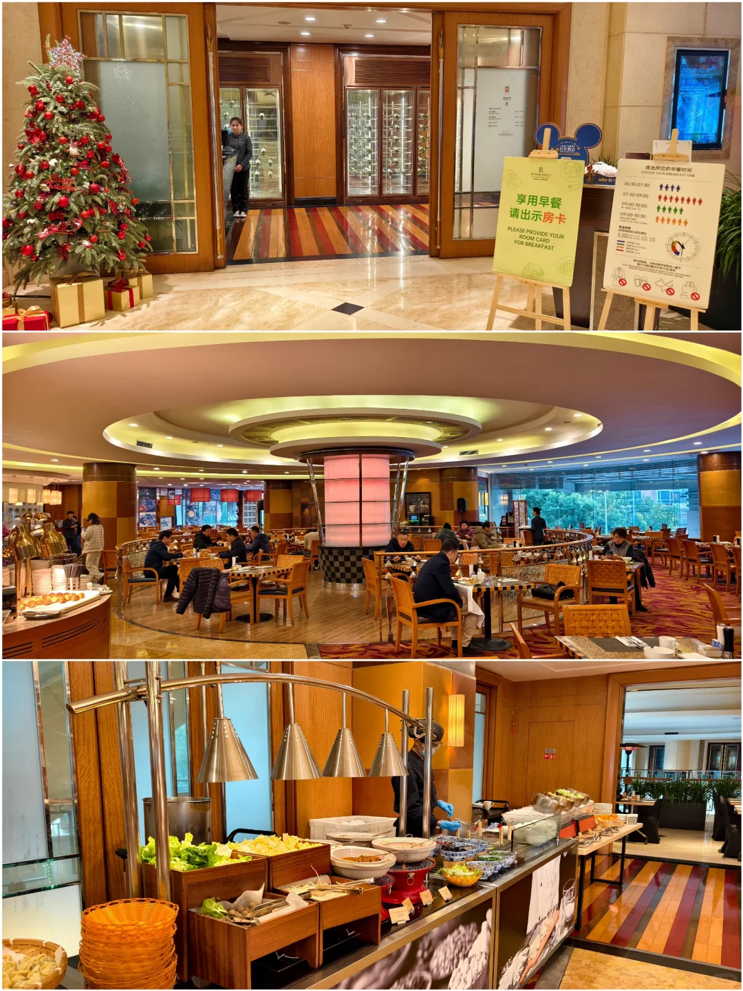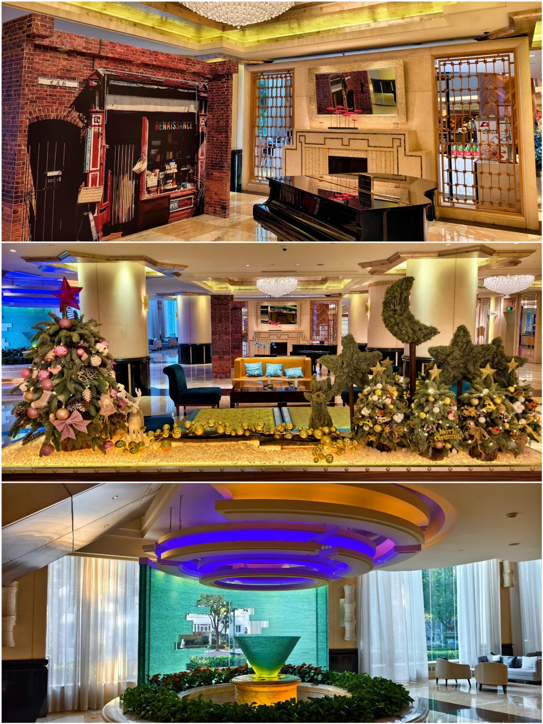 上海淳大万丽酒店位于浦东,离世纪公园很近,是一家上了年纪的老干部酒店,酒店大堂在一楼,有一个超大的水晶灯柱。酒店建筑外观比较土味,酒店公区也有种带着年代感的古早味。圣诞到了,大堂多了一些圣诞树装饰。(P1~P7)。