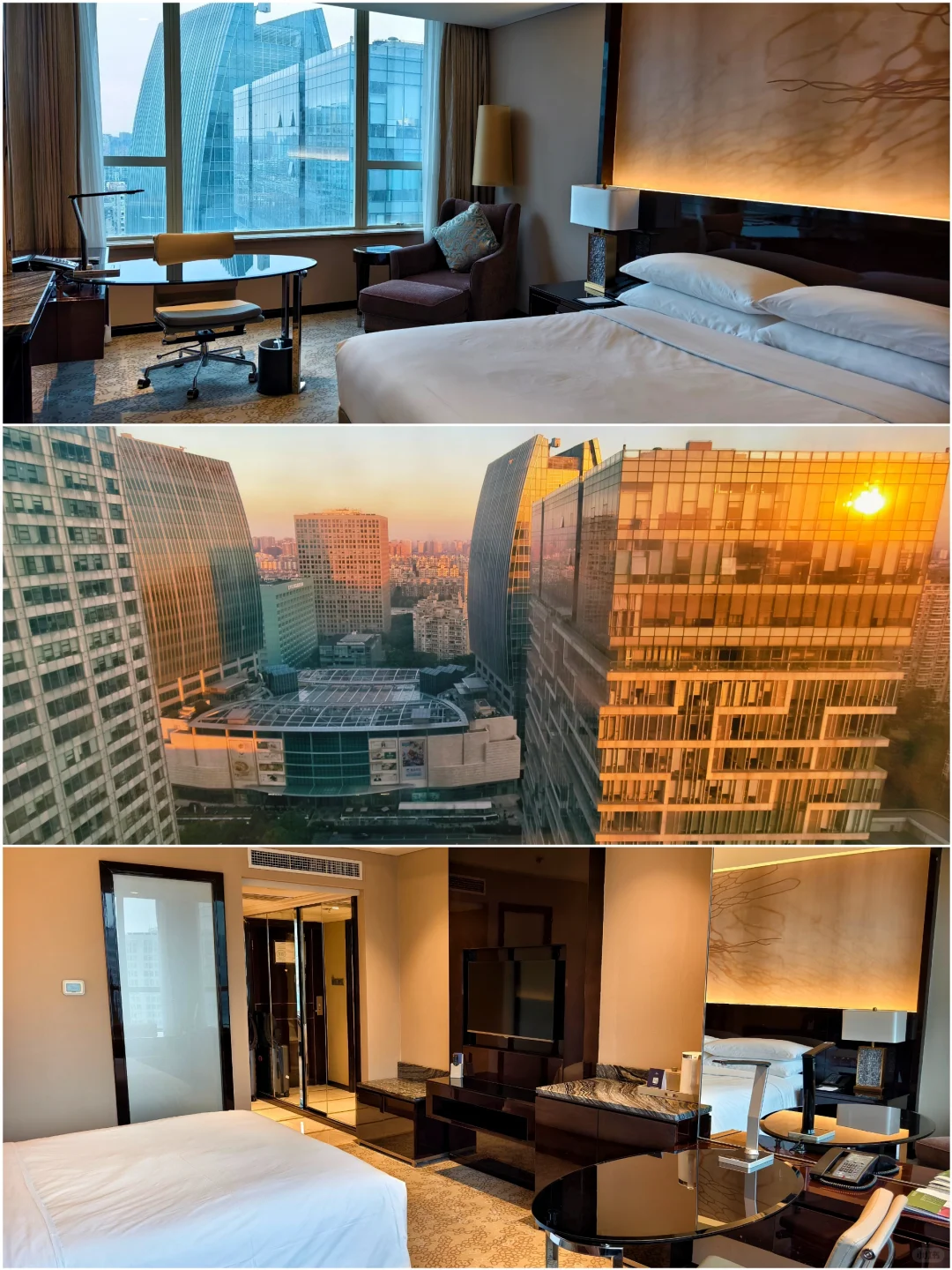 乐游上海住宿消费券和浦东消费券的加持下,酒店居然几乎客满了,没有升级房型,30平米的行政大床客房,房间面积比较小,和其他新开的万丽酒店相比,面积都小了不少。酒店虽然装修有些年头了,但房间设施维护得不错,没有老化得很严重。房间和卫生间有太多的玻璃镜面。给的房间是北侧的,外面是丁香国际商业中心,凌晨能看到日出的反光,南侧的房间能看到世纪公园。( P8~P9 )。