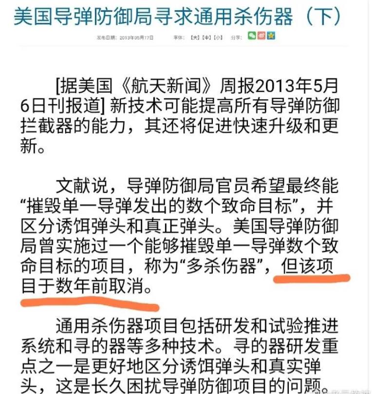 似乎又懂了……这次双发反导就是多弹头反导拦截技术,是一枚拦截母弹,有两个或两个以上的MKV动能拦截弹头,这个技术美国早些年有提出来,然后后面放弃了,现在又被咱们搞出来了,这次实验的新MKV动能拦截弹应该已经具备强大的识别真假弹头的能力,现在咱们的反导真是玩得越来越溜了,以前是挑战拦截导弹的精准率,然后是挑战拦截更高速度的高超弹,现在是挑战识别真假弹头,多弹头拦截技术!又自由王国了……