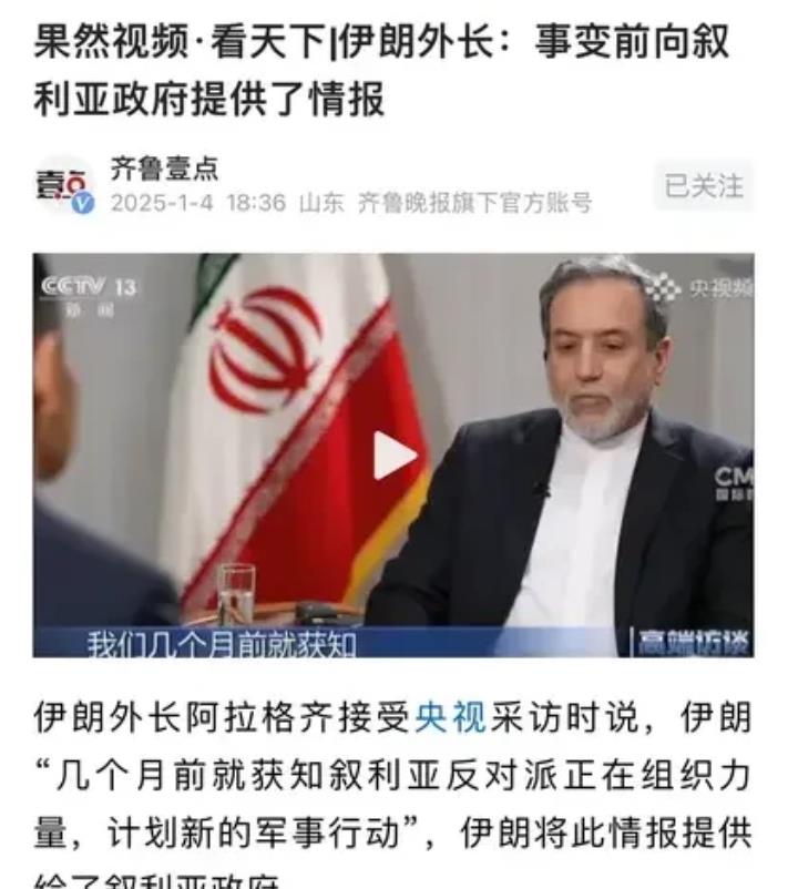 绷不住了!伊朗外长阿拉格齐说了一个让人费解的消息,伊朗几个月前就把叙利亚反对派朱拉尼动态报给了叙利亚前总统巴沙尔-阿萨德,结果硬生生看着朱拉尼变成了艾哈迈德-沙拉。