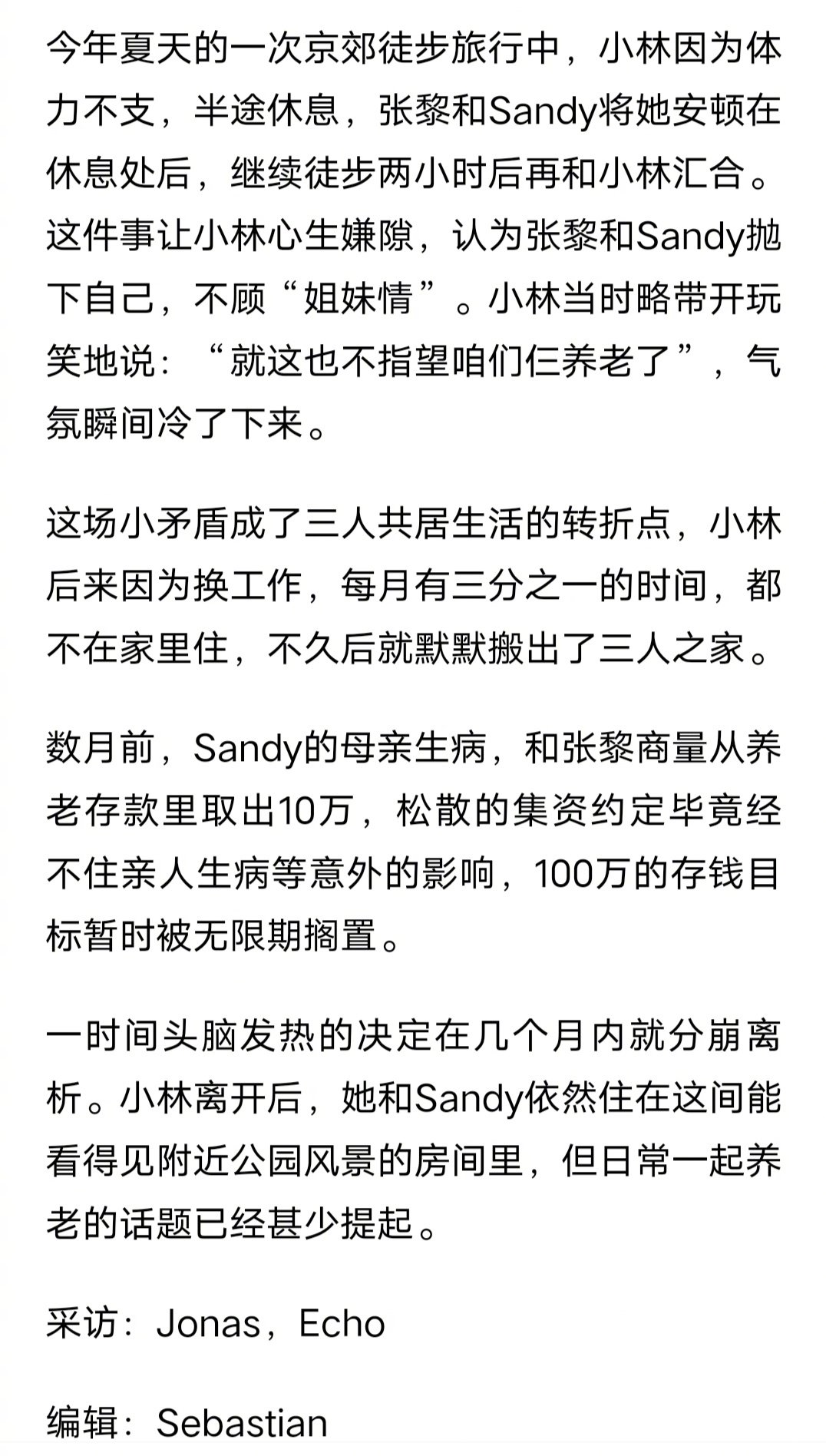 三个北京中产女性的报团养老实验,只坚持了几个月,就被一件小事打败了。