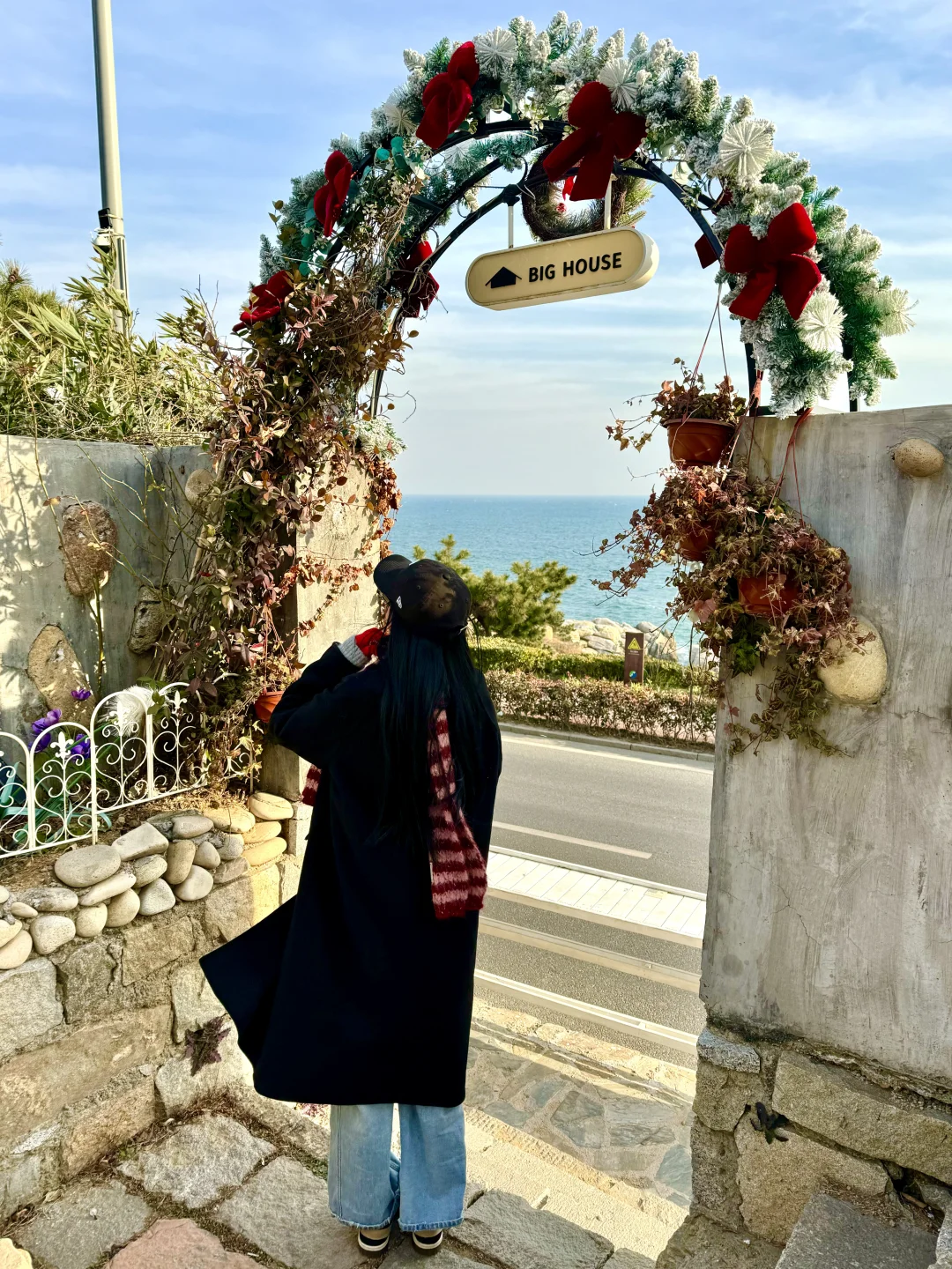 6️⃣大房子咖啡:能看海的咖啡店 院里的圣诞树还在哦