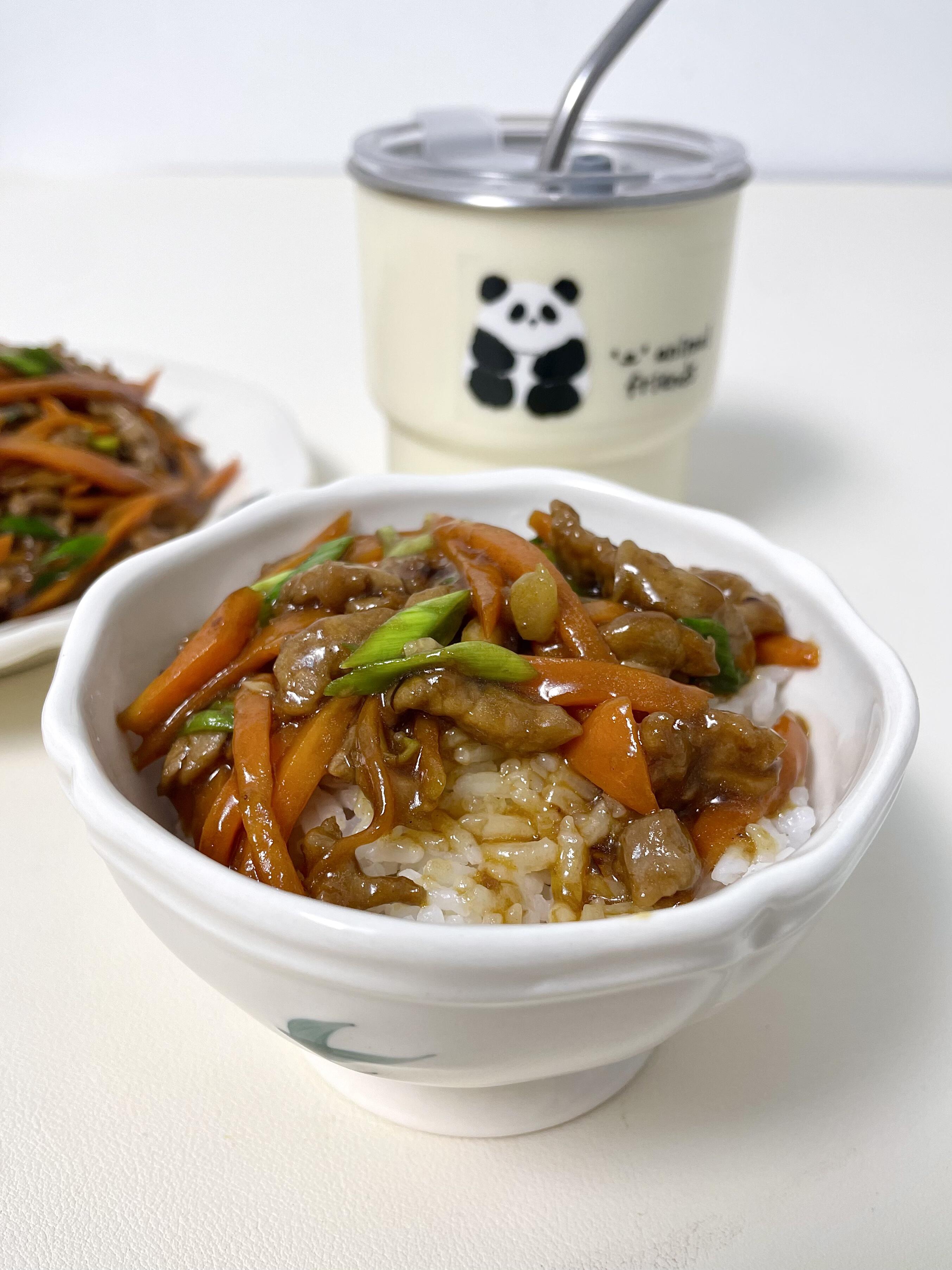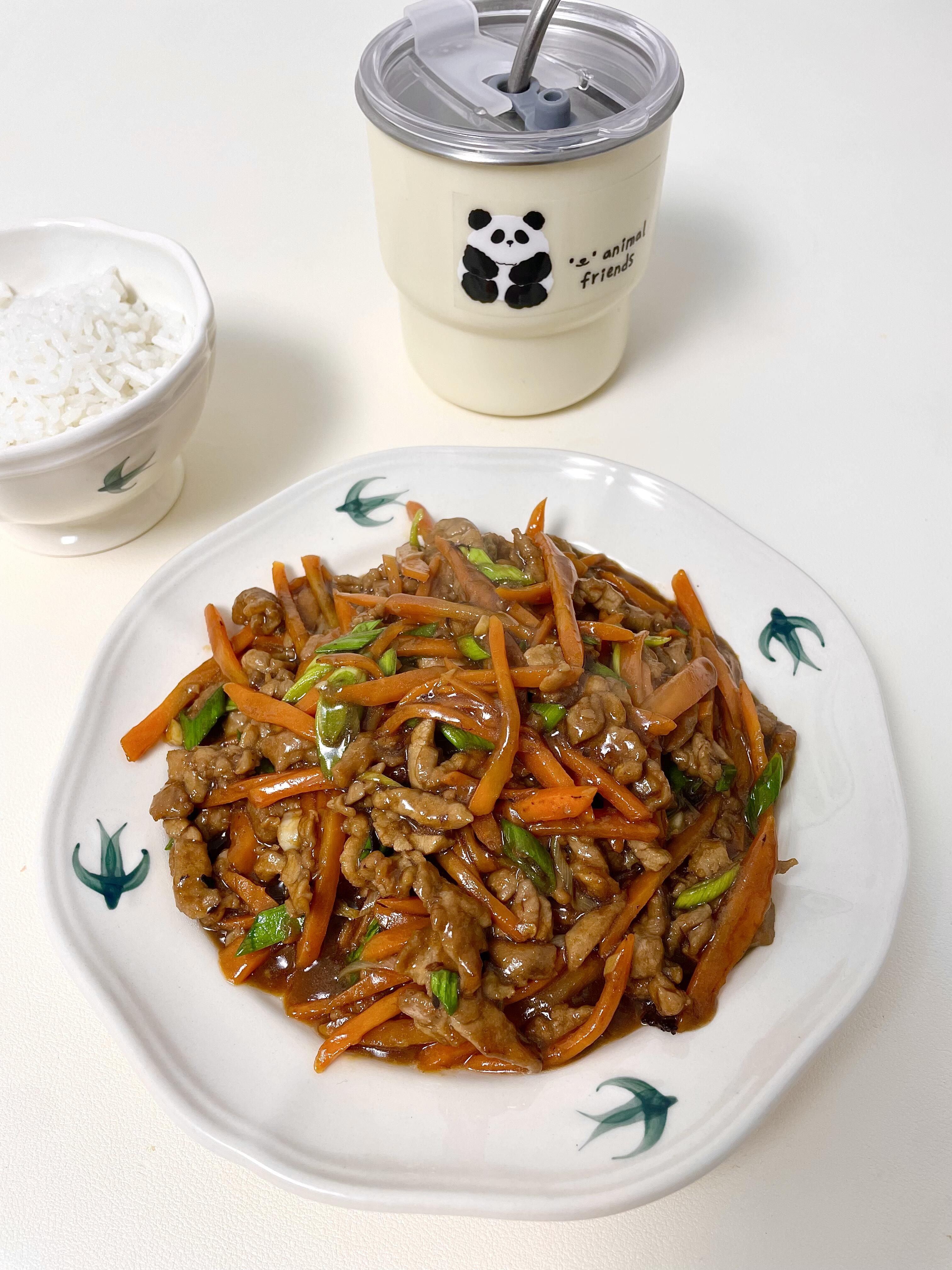 像我这样做出来米饭都要多吃一碗啊 快去做 胡萝卜炒牛肉(图片附教程) 牛肉用红薯粉腌制,炒的时间不要太长,这样真的很滑嫩的,我家里小孩都能吃,也很喜欢吃。 胡萝卜切丝炒的软了就是熟了,软了再放牛肉和料汁大火翻炒收汁就行了,喜欢吃辣的可以放小米辣一起炒,出锅撒蒜叶就行了。 食材:牛肉 胡萝卜 葱蒜末 蒜叶 一碗料汁(图片附教程)