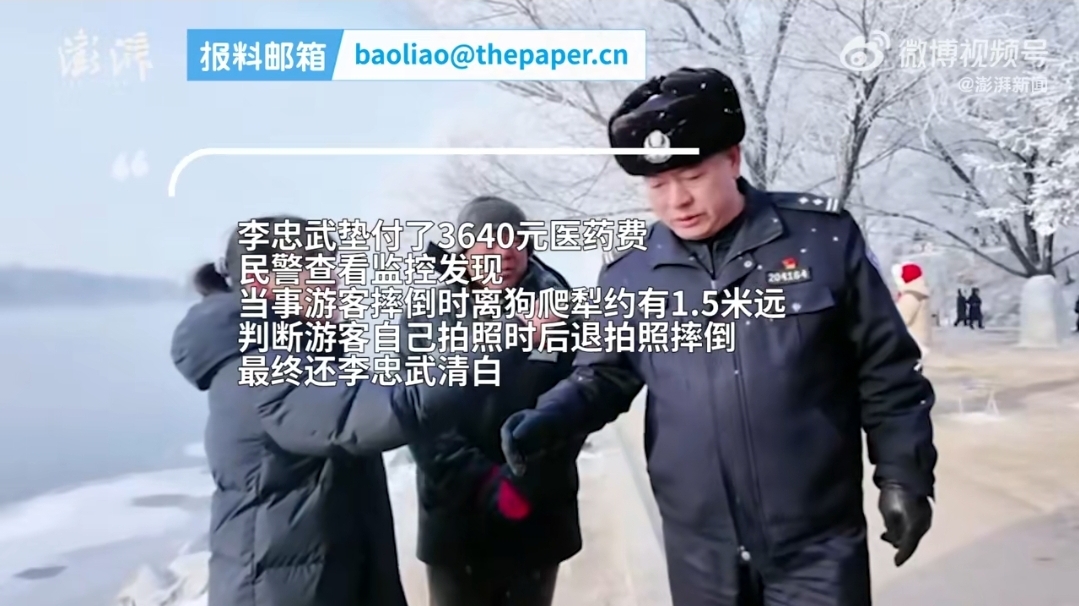 #警方证明吉林垫付3600元医药费大爷清白# 游客自己摔伤,还其清白。