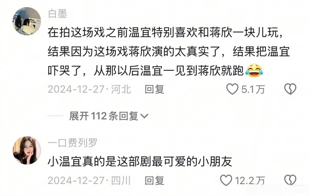 听说这场戏后蒋欣用糖也没哄好小温宜