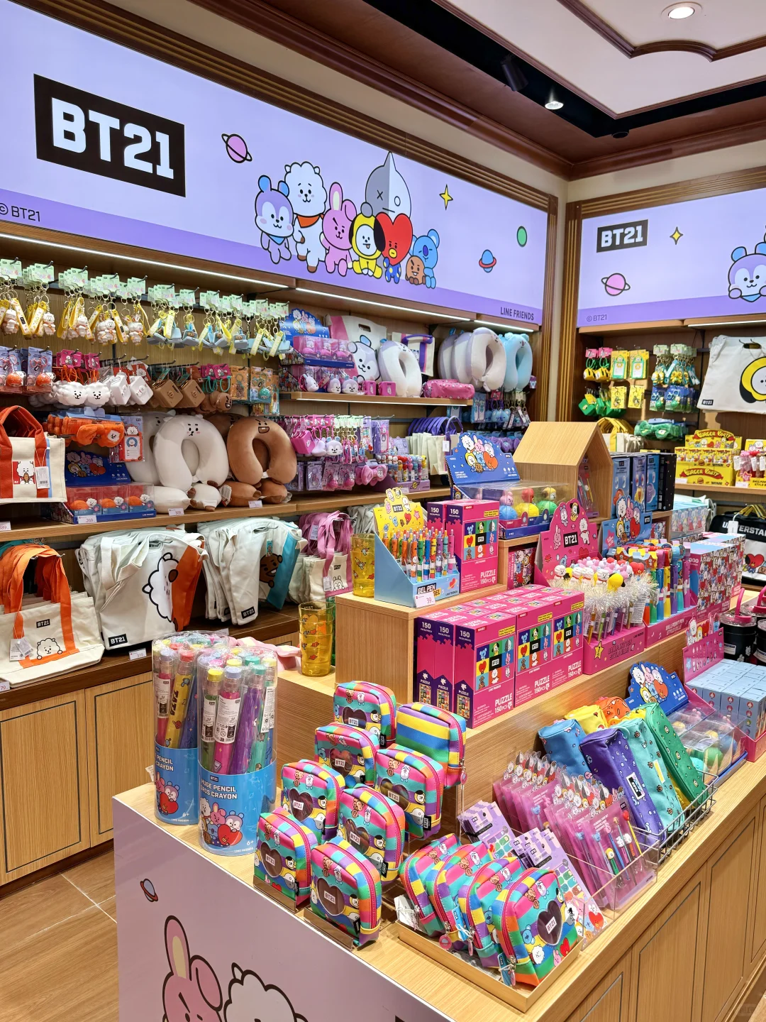 有好多IP在这里集合,哈利波特泰国首发🇹🇭哈迷姐妹们可以直接来这里集合了!有我最爱的草莓熊和各种迪士尼和bt21公仔😘而且还有结合了泰国文化和服饰的限定玩偶🧸可可爱爱真的没有办法拒绝!