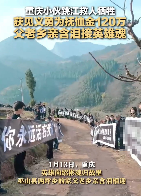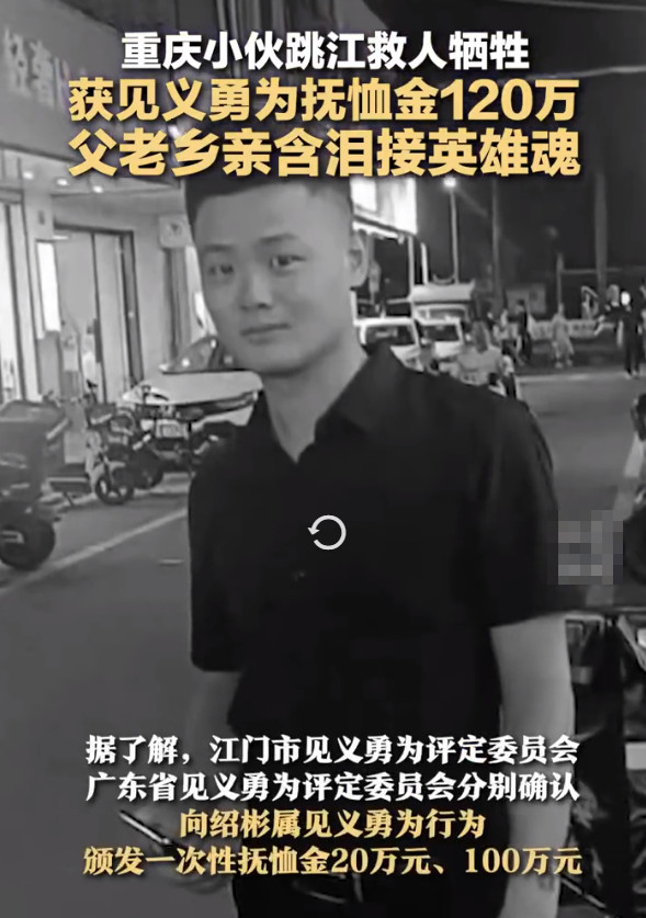 之所以会出现这样的情况,是因为在广东他救助一位落水的亲生女子,不幸丢掉了自己的性命。 这名小伙的名字叫向绍彬。 根据《红星新闻》2025年1月13日的消息 如今向绍彬的英魂已经被送往他的老家重庆。 家人看到他的遗像,泪流满面,差点哭晕过去。 而他也被广东江门和广东省分别评为见义勇为英雄,一次性给他的家属发放了20万和100万的补偿,合计120万。 但是,120万却永远救不回这个年轻的生命。 因为人都死了,这120万有什么用呢? 除了能改善一下小伙家人的生活状况,实际上起不了太大的用。 咱们农村有一句话说得很好:“人都死了,要钱有什么用?” 事实上也正是如此。 哪怕不要这120万,我相信向绍彬的家人也希望他能活着回来。 我想说的是,那些轻生的人,请你们在做选择的时候,一定要好好想一想,难道自己非要走到这一步吗? 你不珍惜自己的生命,但是别人在乎,哪怕一个陌生人都知道拼着自己的性命把你救起来,难道你自己都没有想过要让自己好好地活下来吗? 人生来皆苦,但是如果慢慢地走过去,等到自己年老的时候,或许就会发现实际上哪有那么多的痛苦,真正熬过去之后也只是一切随风而已。 这里希望不管是那位落水的女子还是未来因生活琐事想要轻生的人,都请你们要珍惜自己的生命,不要给自己的家人添麻烦,也不要给别人添麻烦。 也许你跳进河里觉得非常痛快,但是救你的人如果因你而死,他们的家属却要经历难以言喻的痛苦,而且这种痛苦需要持续很多年,才能把伤痛彻底掩埋。