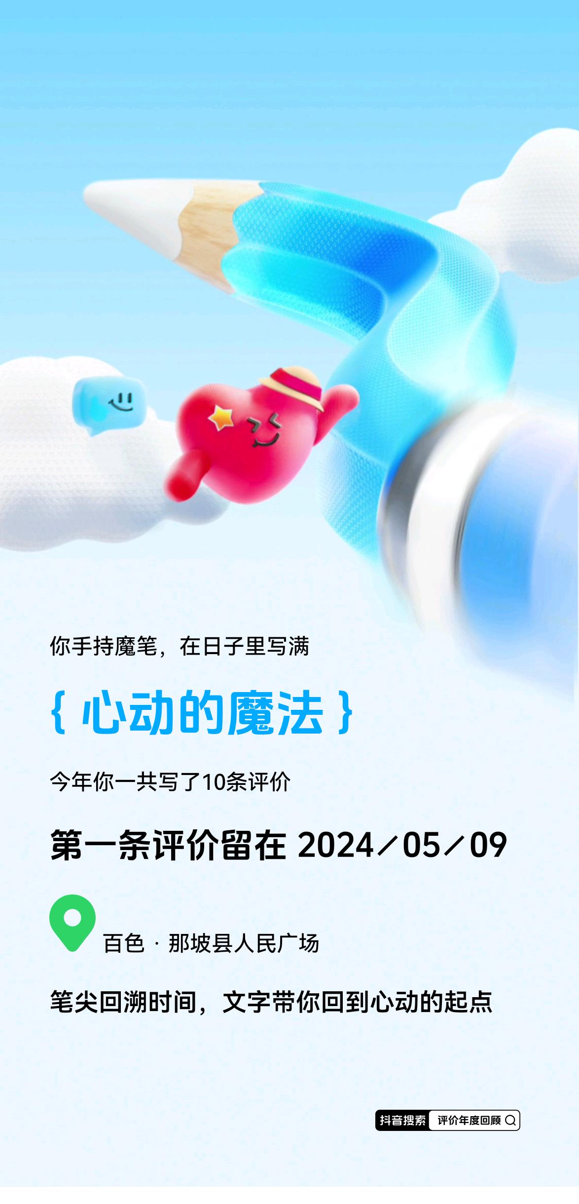 抖音搜索「评价年度回顾」,看专属写评回忆,领精美头像挂件