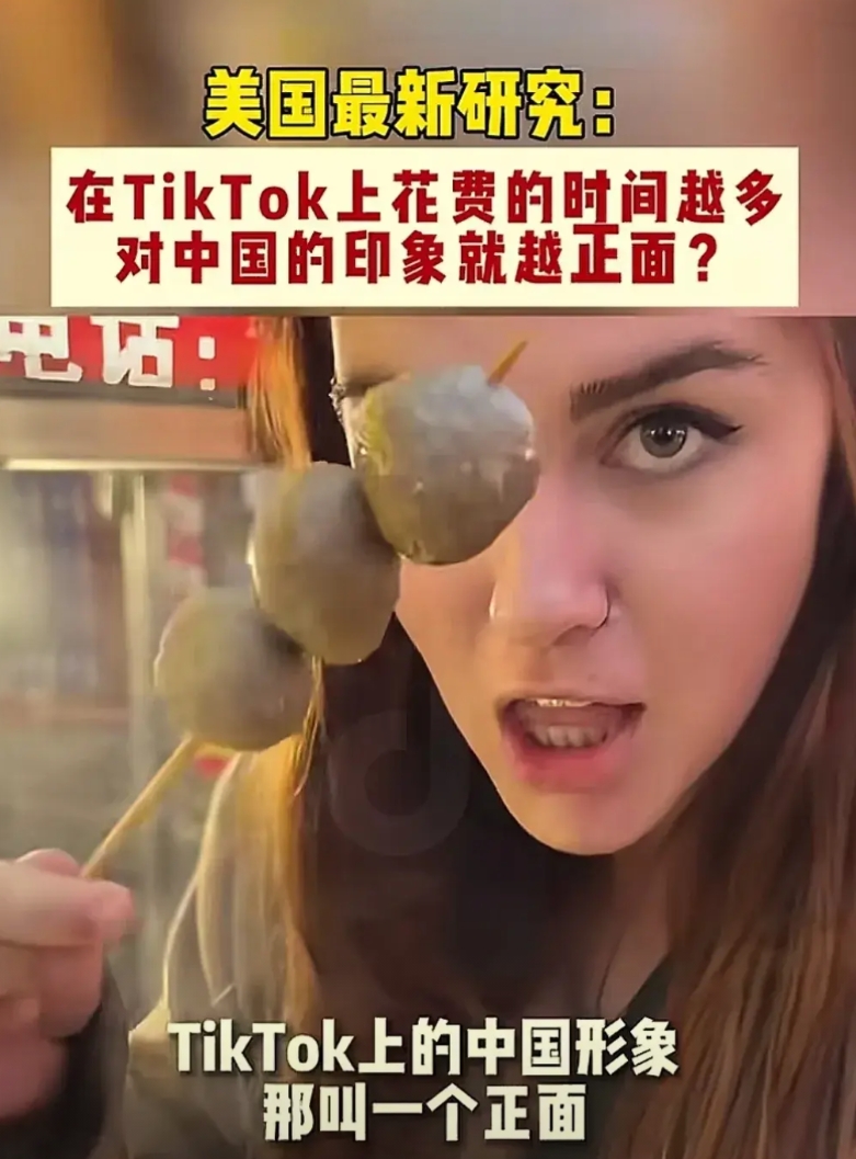 美国有个研究,说在tiktok上花费的时间越多,对中国的印象就越正面。在油管,脸书这类平台上,中国的负面内容超过80%。而tiktok只占11%。相比政治话题,tiktok提供给用户的更多是中国文化和旅游的视频。
