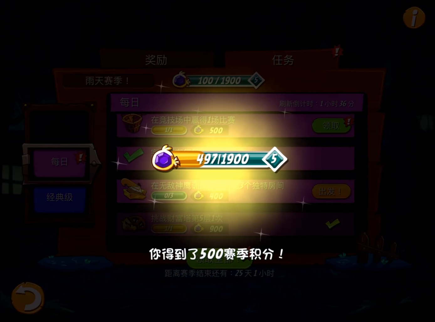 这期我们去玩愤怒的小鸟2的竞技场[作揖]本竞技场主打的是弹簧床,有扁扁的弹簧床,还有球一样的弹簧床。小鸟宝宝能弹上去,就有希望取得胜利。胜利后会给积分奖励,完成所有任务还能得60个宝石的奖励,我觉得60个宝石的奖励是最有用的,以后闯关打BOSS需要很多宝石。