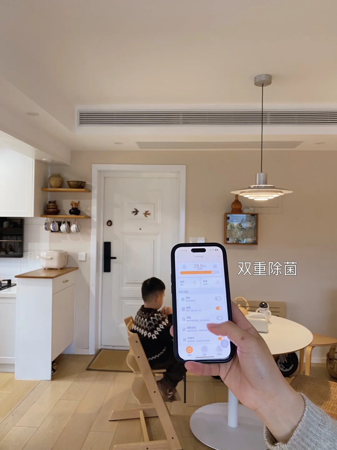 房子还是自己住的,🍂住起来干净舒服更重要,我家还有小宝宝,室内空气质量更得上心,还好家里的美的星光风管机可以一键高温除菌智清洁🍃,梅雨天气不用担心空调吹出来的风有异味,还省了不少清洗空调的费用。🌱再加上新增的负离子净化除菌还能改善室内空气,H1N1等病毒灭活率能高达99%,现在正是流感季,大人外出工作后回家陪娃,👶有了它我也安心不少。