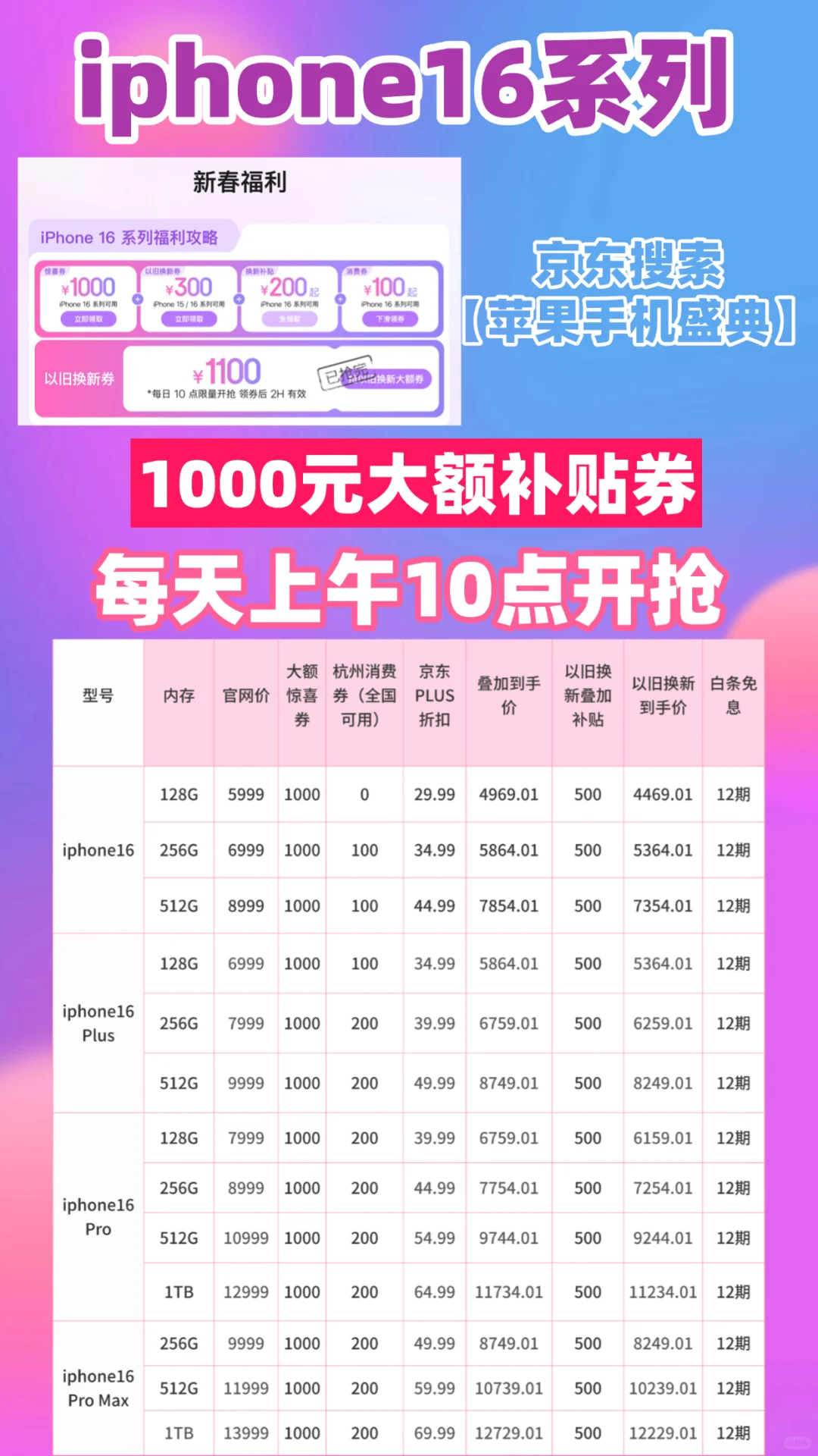 🔍【苹果手机盛典】,进入会场领取1000元大额消费券1000,和杭州消费券【100~300】以旧换新补贴还有500!/额外还可以用12期免息