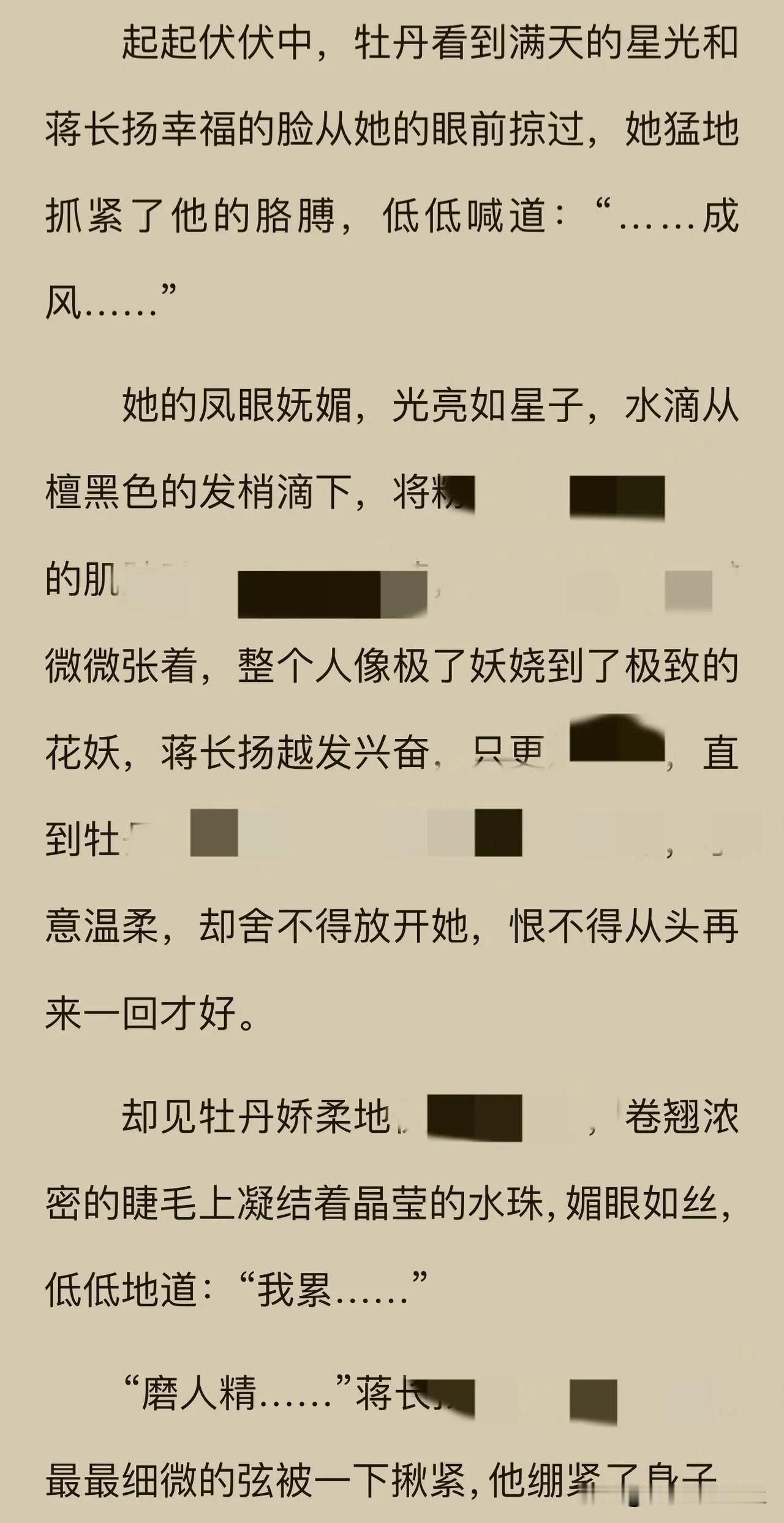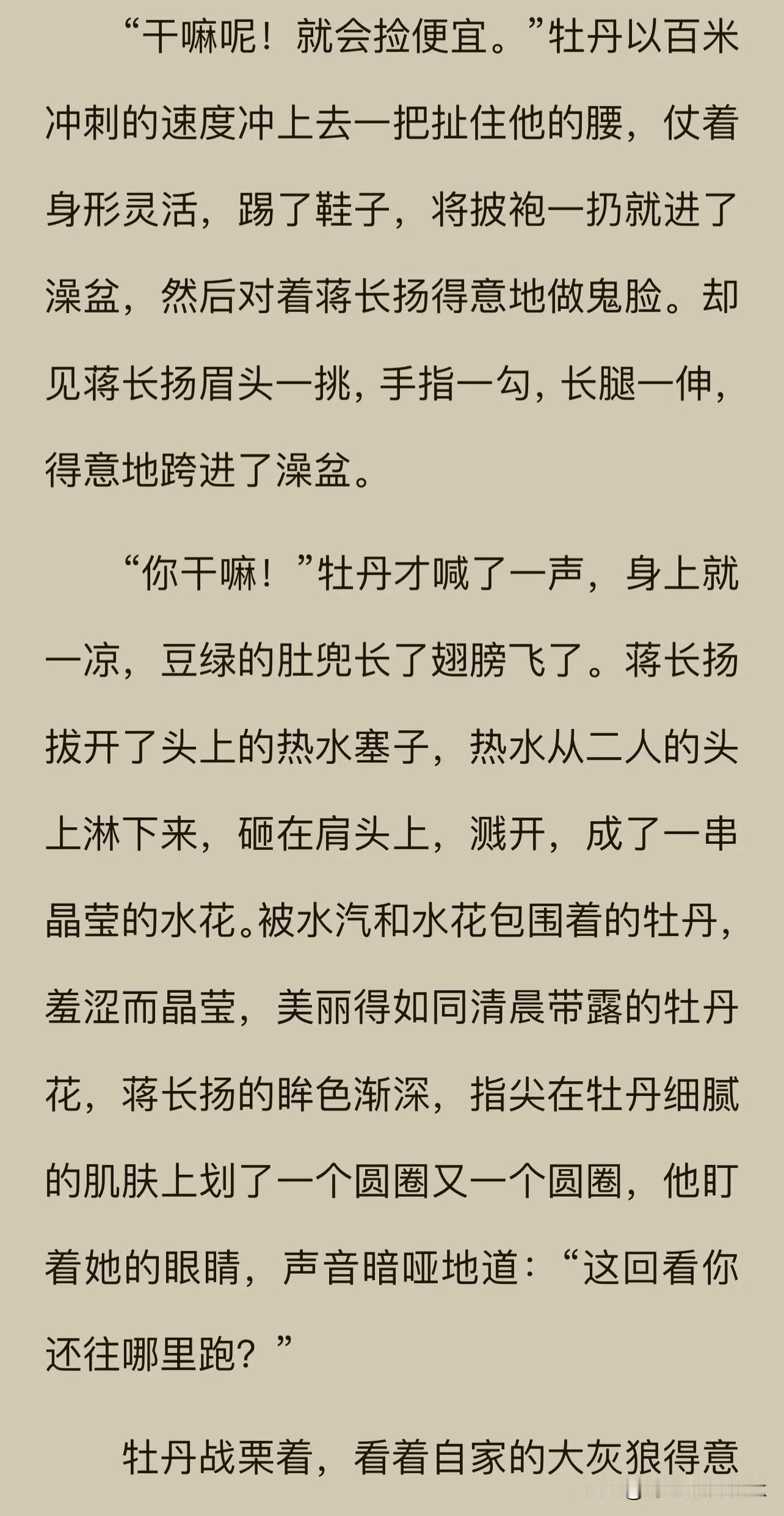 《国色芳华》原著蒋长扬和牡丹婚后沐浴都这么甜[机智] 原著中成亲当晚蒋长扬才知道牡丹和刘畅的婚姻形同虚设,牡丹还是黄花大闺女,这让蒋长扬既心疼又兴奋,心疼牡丹被刘畅羞辱成这样,兴奋自己是牡丹第一个男人[捂脸] 从此蒋长扬过上了没羞没臊的生活 沐个浴都这样了,不过剧版应该不会拍出来,最多亲个嘴,然后其他的自由遐想去[灵光一闪] 不过你可以带入李现和杨紫的脸,配合着看原著,超甜[飞吻]