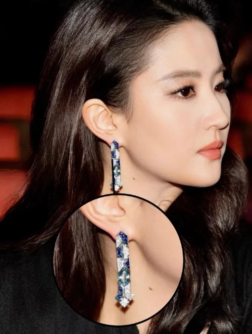宝格丽这个耳饰太沉了,刘亦菲的耳朵都红了!刘亦菲没办法只能用手托着这个耳饰,真是沉重的美啊。